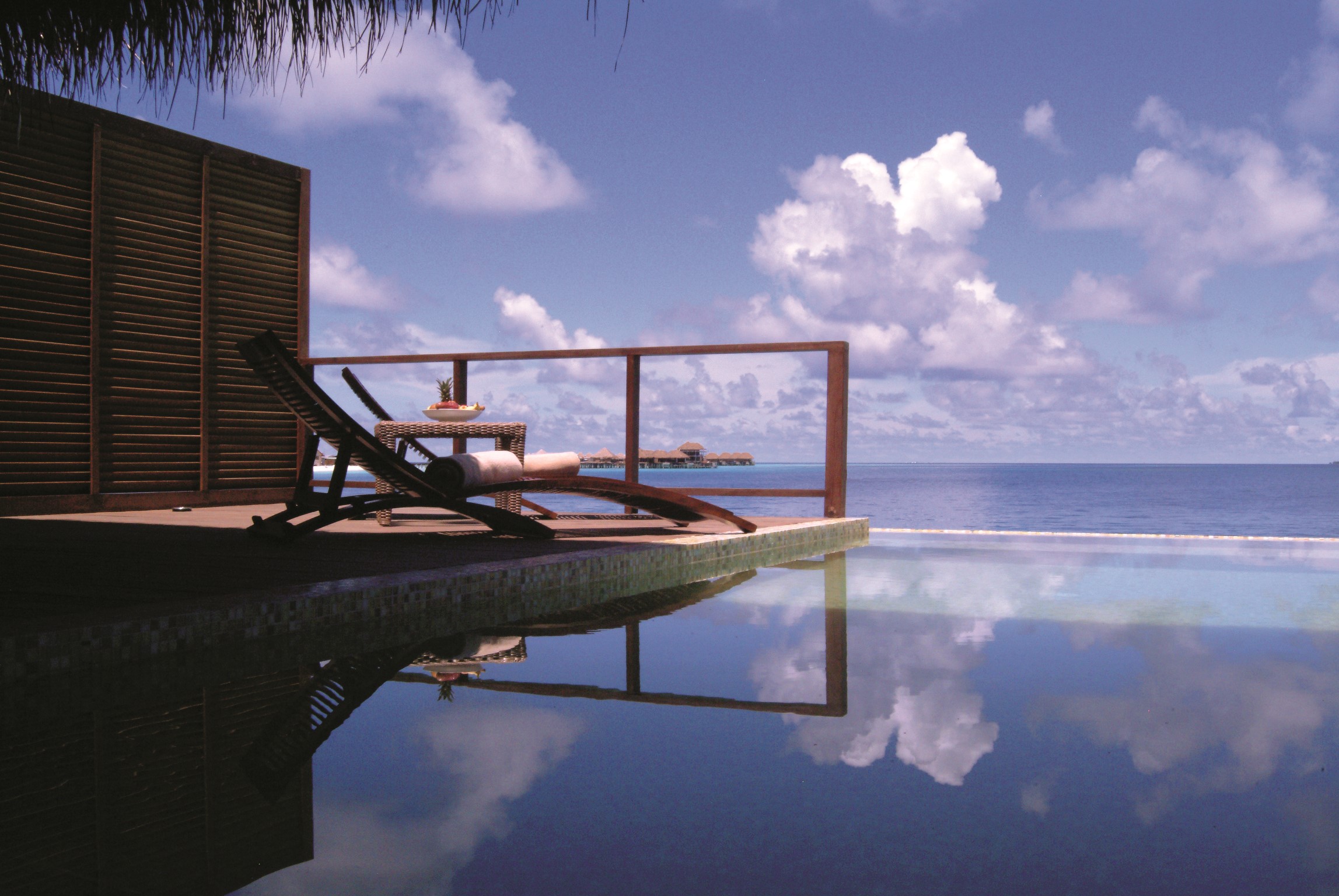 顶级别墅拥有特大的床组,和宽敞卫浴间和加大面盆与独特设计的浴缸,从这里直接可看到海洋景致。一个宽敞室外甲板设置,加上一个小泳池,无论是做日光浴、用餐、休息、欣赏美丽的海景都是绝佳的享受。