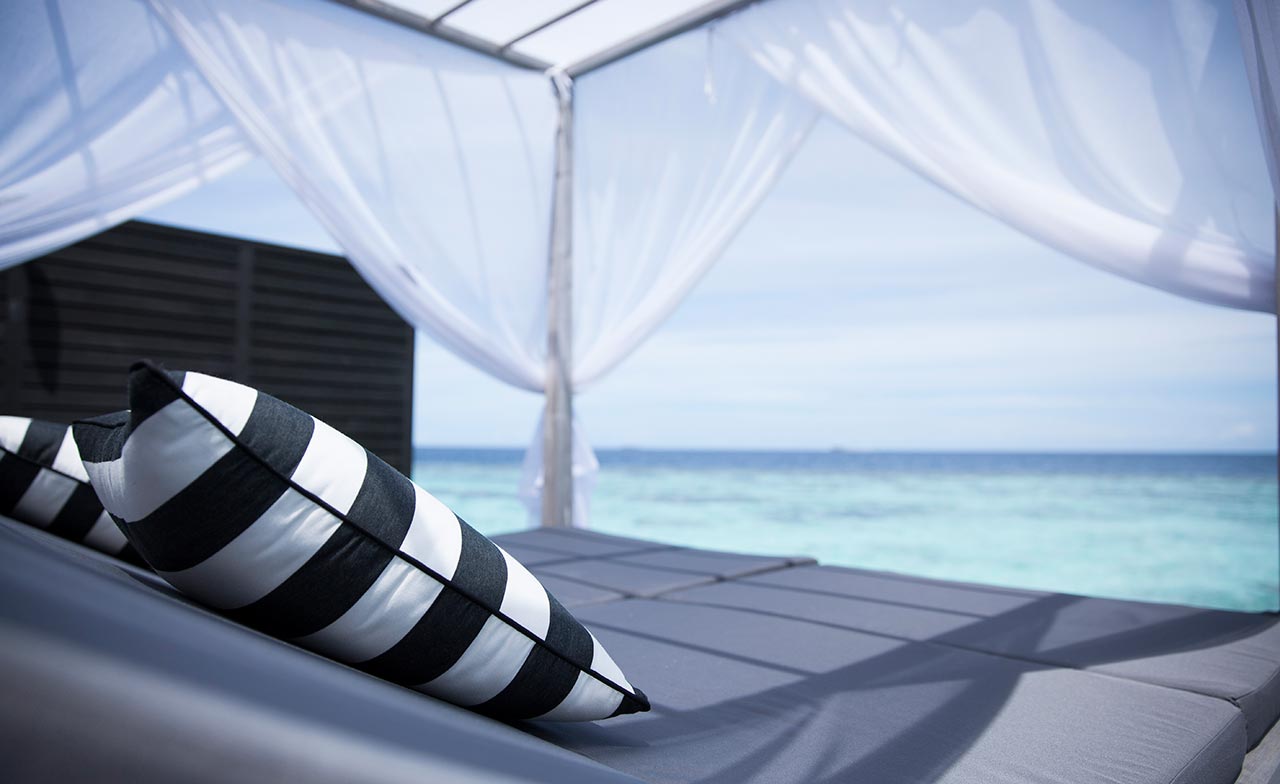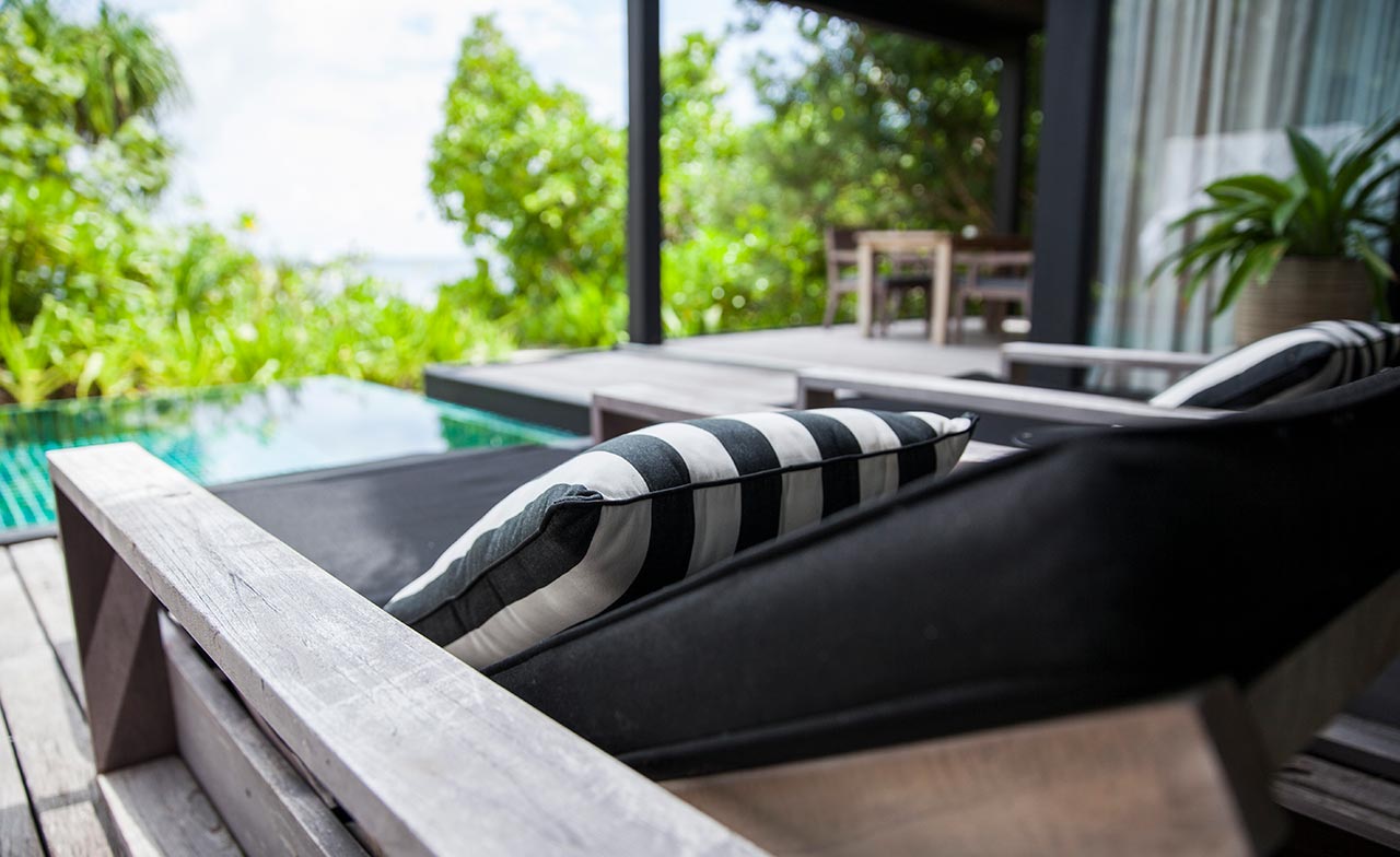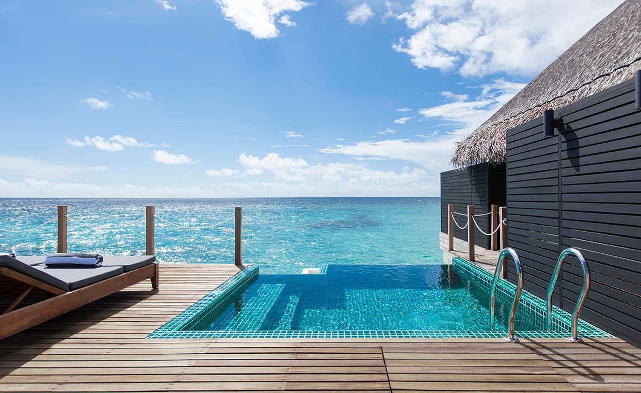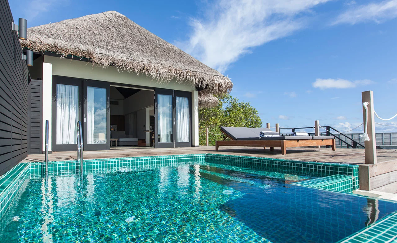 科诺塔泳池别墅对于想要轻松进入泻湖温暖水域的家庭来说是完美之选,别墅提供室外无边泳池和带日光躺椅的大木甲板,主卧室设有落地窗和一张大床,客房提供两张单人床,别墅的浴室配有双水槽、浴缸和淋浴设施。