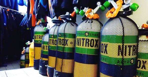 潜水的气瓶分为普通的和高氧气瓶。普通气瓶能维持10米1小时左右的潜水,高氧气瓶因为含氮量低,所以能够维持更长时间。但是高氧存在氧中毒风险,也需要技术学习后才能潜,初学者谨慎使用