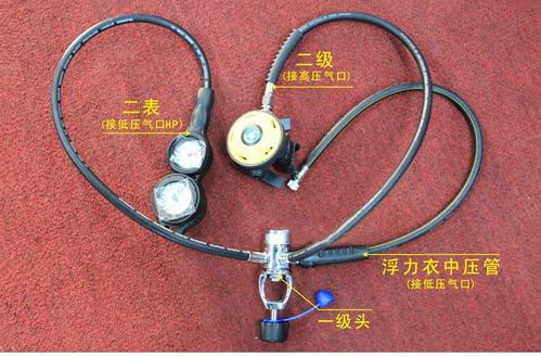 调节器的功能是把气瓶中的高压空气转换成正常压力的空气然后让我们进行呼吸。调节器可以说是所有装备里对安全性影响最大的了。