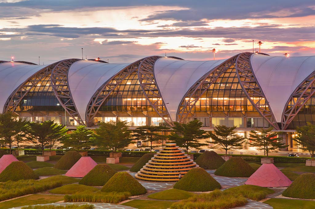 曼谷的素万那普国际机场无疑是一座极度炫酷的交通枢纽,仿佛科幻电影里才有这样的建筑。事实上,曼谷国际机场以其独特的设计在 2012 年成为 Instagram 中被拍照次数最多的地方。素万那普机场由几条长长的管状通道构成,整体为钢构玻璃帷幕建筑,所有人都想将其绚丽的外观记录在手机中。
