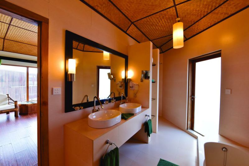 水上别墅设有令人惊叹的玻璃底餐桌,可以看到水下游弋的鱼儿。拥有私人阳光甲板,可直接通往绿松石一般的泻湖。从你的房间可以观测到无边的海景,供你欣赏。