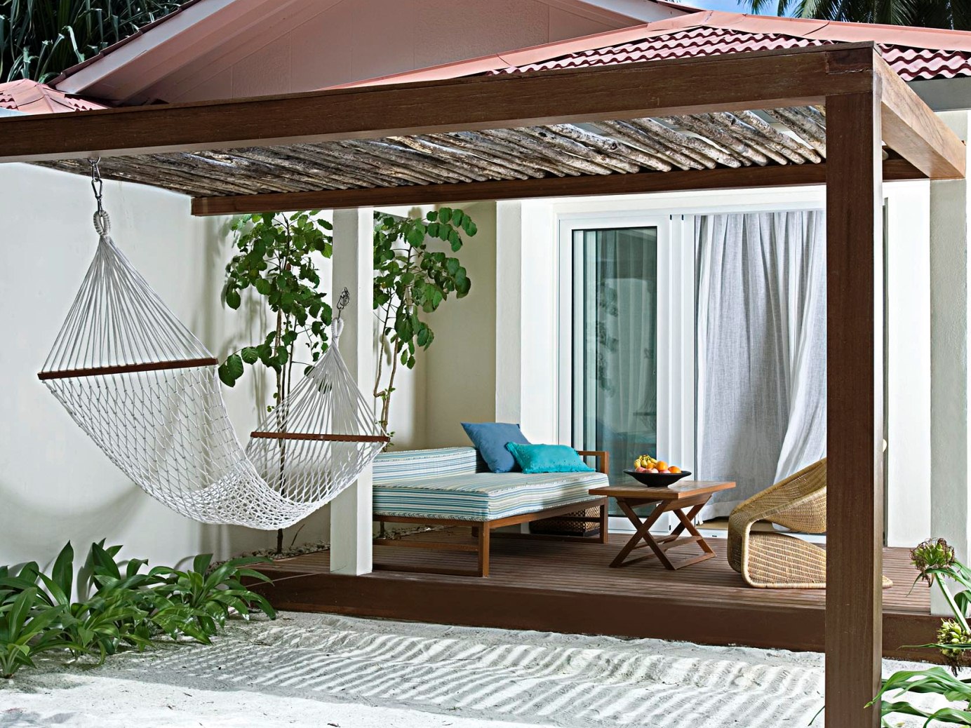 花园别墅坐落在摇曳的岛屿棕榈树荫下,周围环绕着茂密的植被,还可以欣赏到海滩的景色。房间设有吊床和室外花洒淋浴,还有大型的景观窗户,让户外的美景与室内舒适的生活环境和谐相融。让客人有独特的马尔代夫度假体验。
