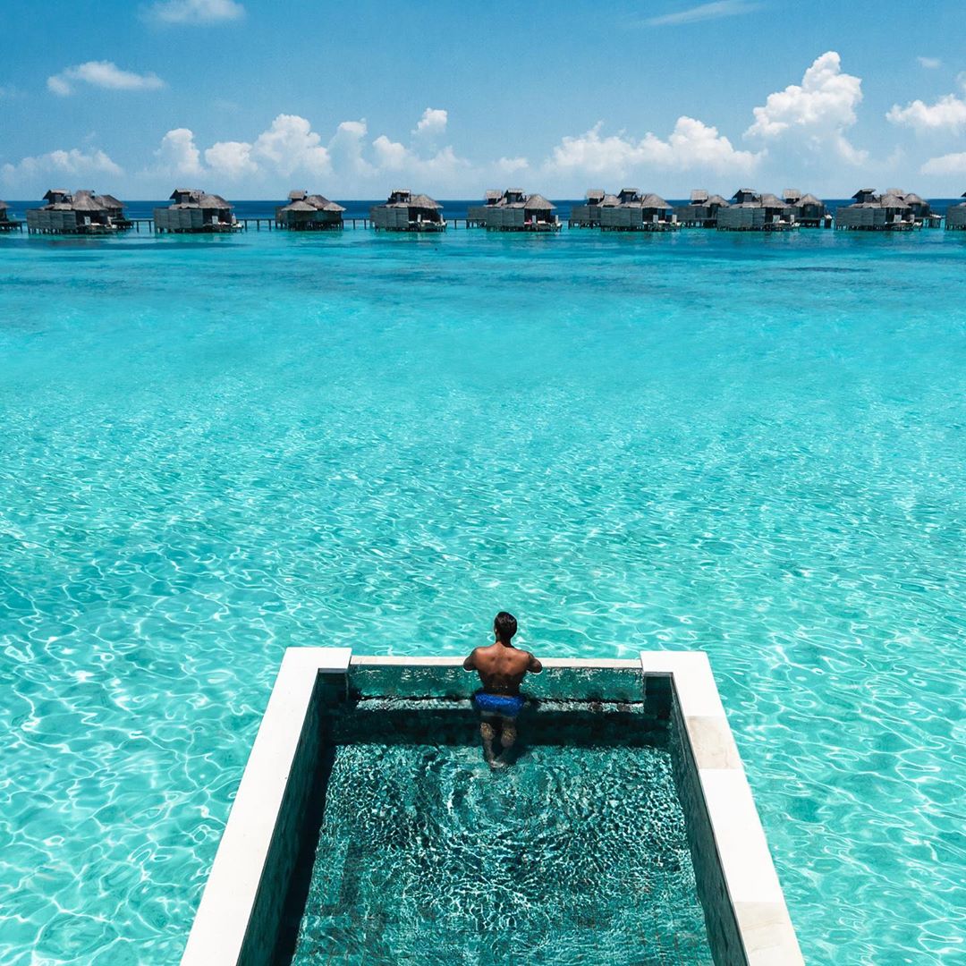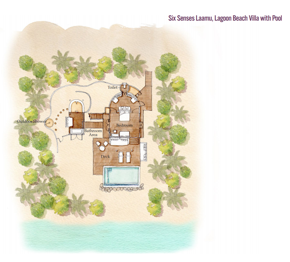 配备私人游泳池的沙滩别墅隐藏在茂密的热带植被中,正对美丽的环礁湖,在宝蓝色大洋美景的环抱中享受绝对的私密空间吧。游泳池距离沙滩仅数米之遥,阳光躺椅就放置在游泳池边,畅游一番后可在此享受阳光的沐浴。伴随着柔和的海风拂动树叶的声音,在树林环绕的露天淋浴室或室外浴缸中美美地洗个澡,在私人花园中静静地放空自己。该别墅同样拥有悬空观景台。