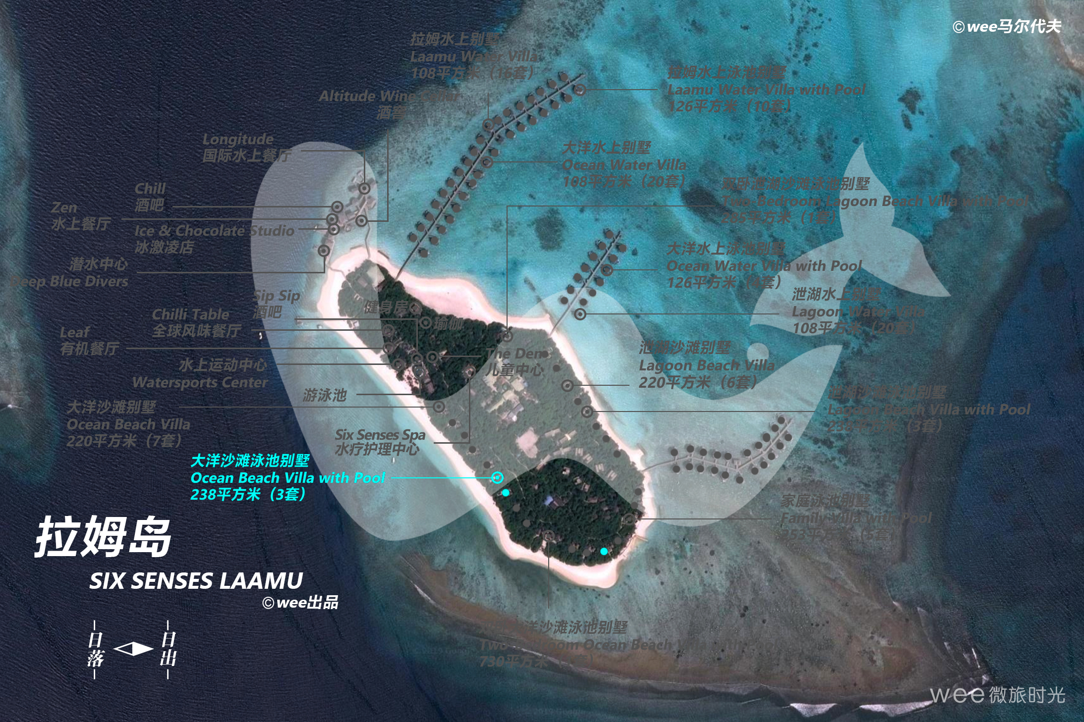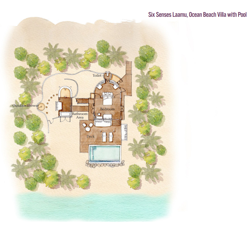 泄湖沙滩泳池别墅一致,在室外额外配备了私人泳池,别墅隐藏在茂盛的热带植被中,坐落在岛屿西侧,坐拥绚丽的无边印度洋风光。