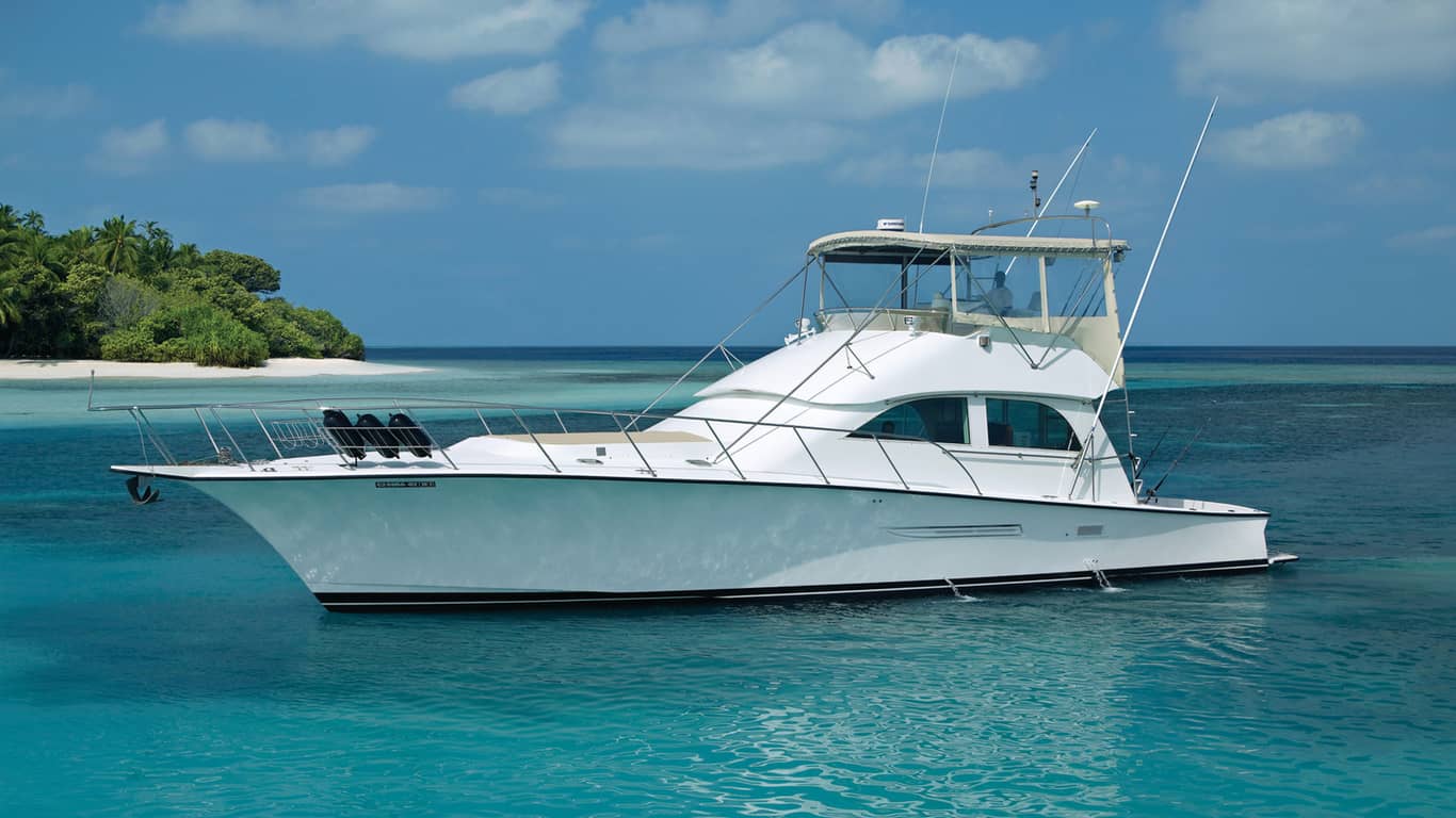 日落前,乘坐豪华的私家游艇,在海上漫游一番。酒店的私家大厨和管家将为你的晚餐准备美酒佳肴,并陪伴你至深夜。在船上美美地睡上一觉后,次日清晨享用贴心的早餐,在僻静的沙滩上流连片刻后,即可返回酒店。