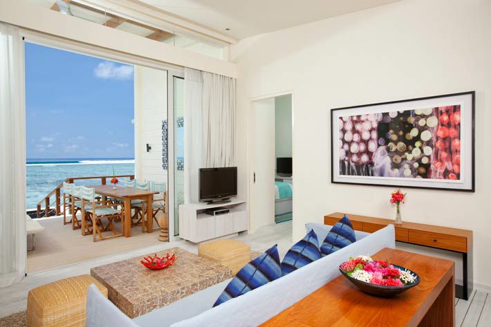 在康杜玛岛引人惊叹的水上楼阁中一览无余地欣赏日出日落、海洋与天空之景。房间设有两间卧室,两间浴室,室内起居区以及带露天花洒淋浴和日光浴平台的户外空间,是家庭度假的完美之选。