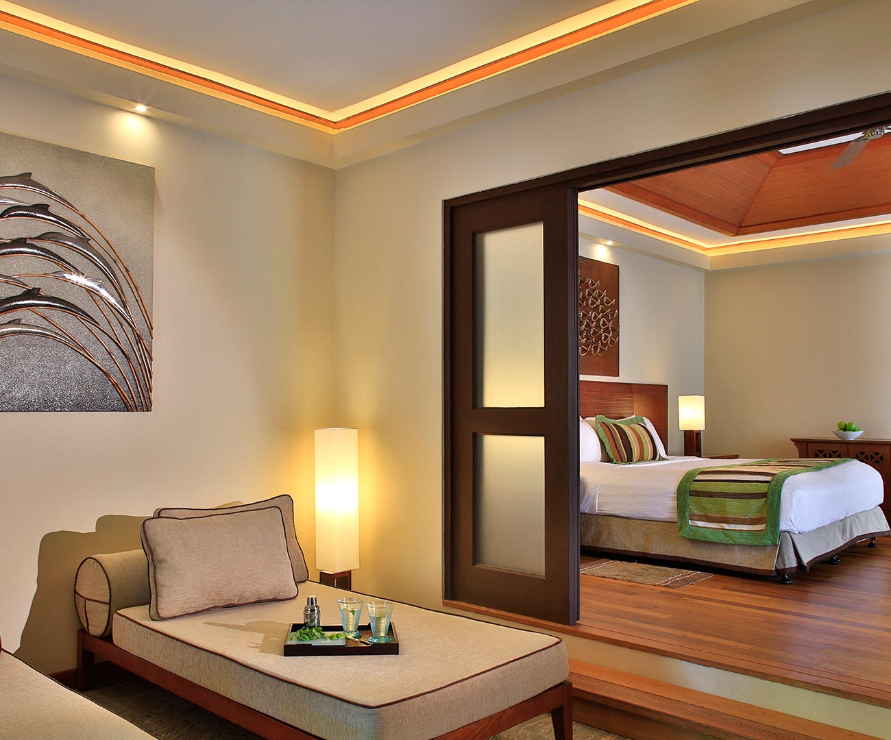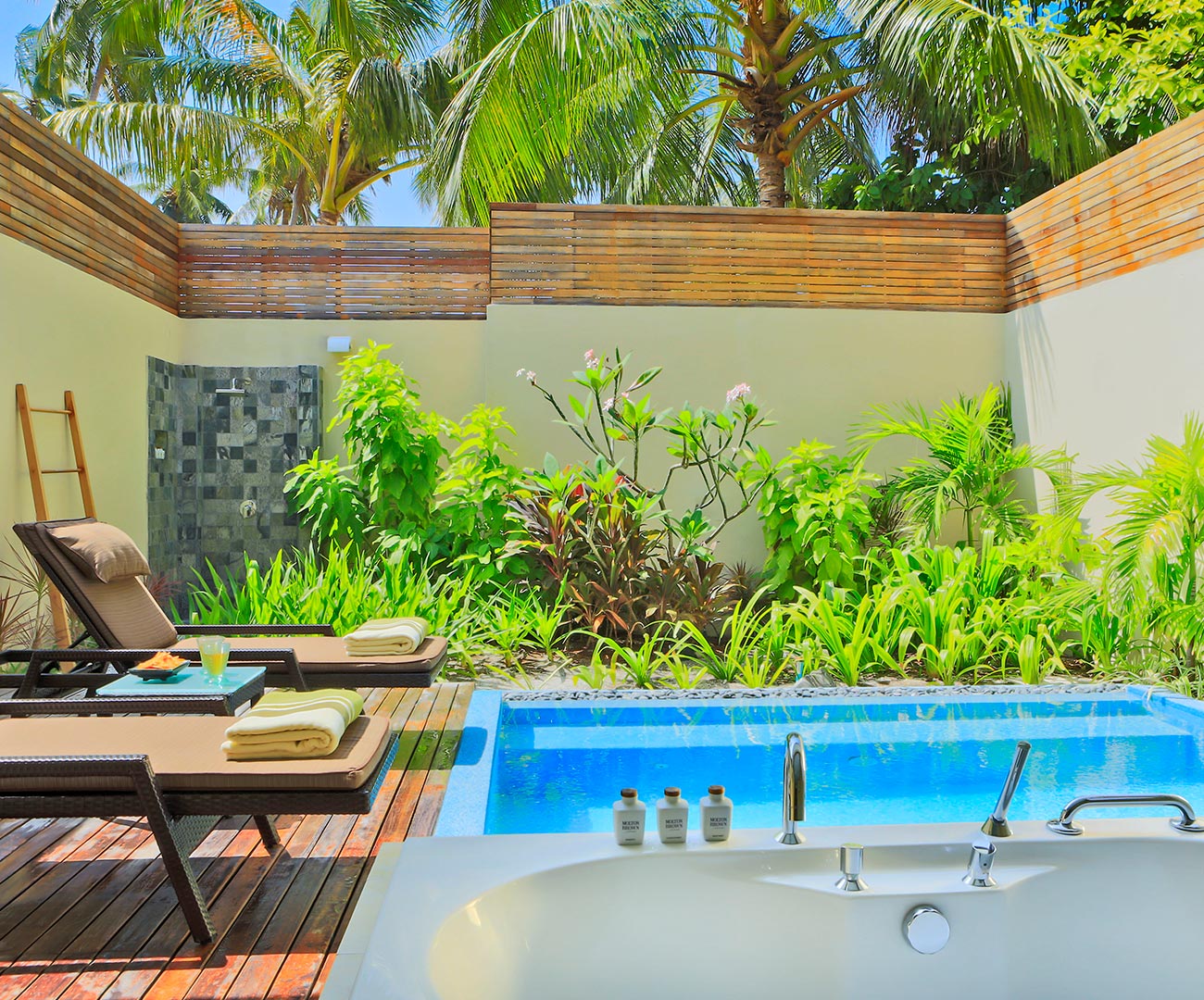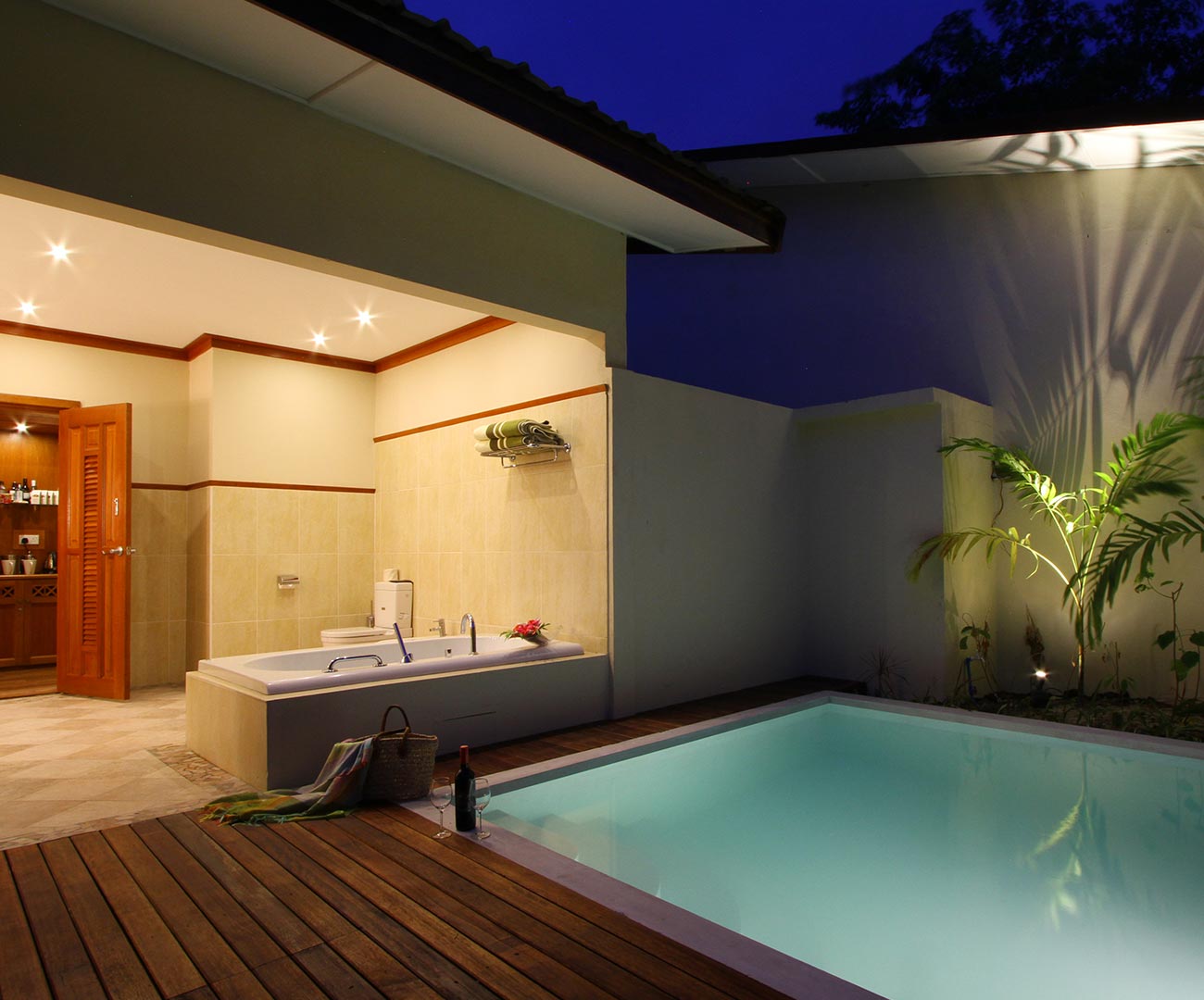 Garden Pool Villa 坐落在热带花园中,房间提供一个宽敞的卧室和客厅,是夫妻和家庭度假的完美度假村。每间都有配备电视的起居室,邻接的卧室设有复古式浪漫帐床。户外浴室有高级按摩浴缸。