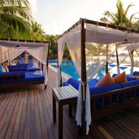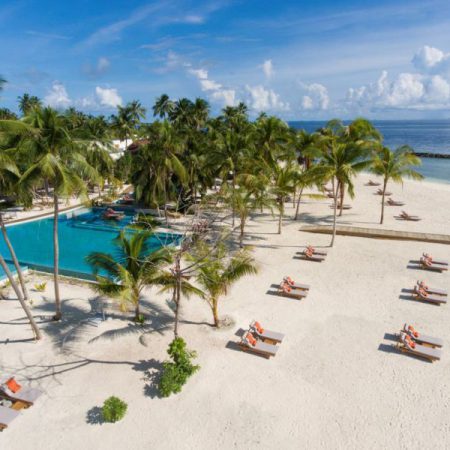 美露丽芙岛屿面积较小,绕岛一圈约20分钟。这里有葱葱茏茏的热带花园,白皙无暇的海滩以及色彩分明的海水。在岛上,你能尝到最正宗的上等椰汁,也能在茂盛的棕榈树下浮生偷得半日闲。性价比极高的拖尾酒店,繁花似锦的优美海岛。距离马累128千米,水上飞机35分钟即可上岛。