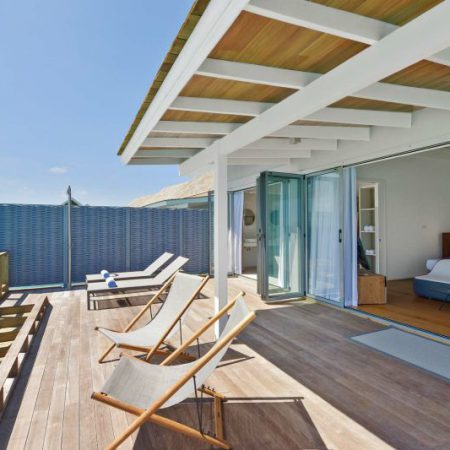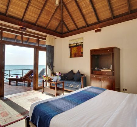 双鱼岛是一家大型而高档的度假村,成功营造出亲切、私密的氛围。沿着海滩散布的房间分两个等级,但品位都绝对高雅:四面带幔子的床由黑木制成,全部带有直通海滩的阳台或露台。漂亮但风格多元的水上小屋在交互上散布开来,排列成两个圆环状。海滩虽然很狭窄,但十分迷人,还有一个拖尾沙滩。