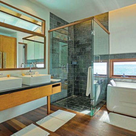 面朝日出或朝向日落的水上别墅位于泻湖水晶般清澈的大海之上。卧室设有落地窗,从卧室的玻璃窗可以观赏到海洋迷人的风景,拥有大床房或双床房,独立的浴缸和淋浴设施,私人室外走廊,大庭院及小道通向海滩,马尔代夫式的秋千,阳光休闲区。