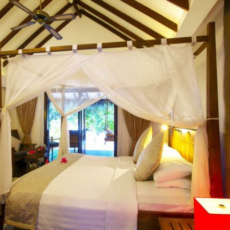 半独立式海滩别墅坐落在粉白色的沙滩上,周围环绕着茂密的植被。房间亮点包括四柱特大号床/两张单人床和室外花洒淋浴,海滩别墅设有连通门。