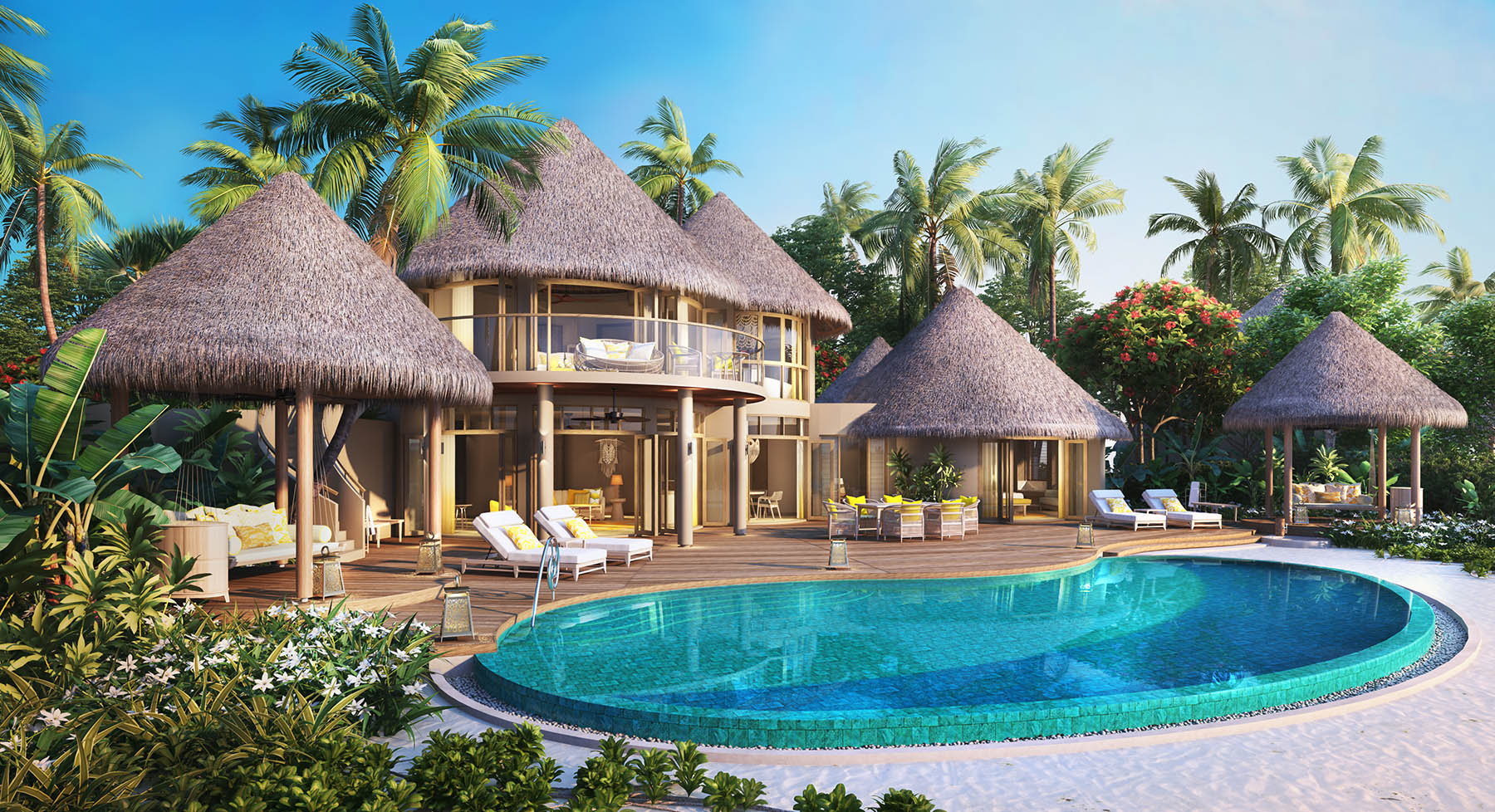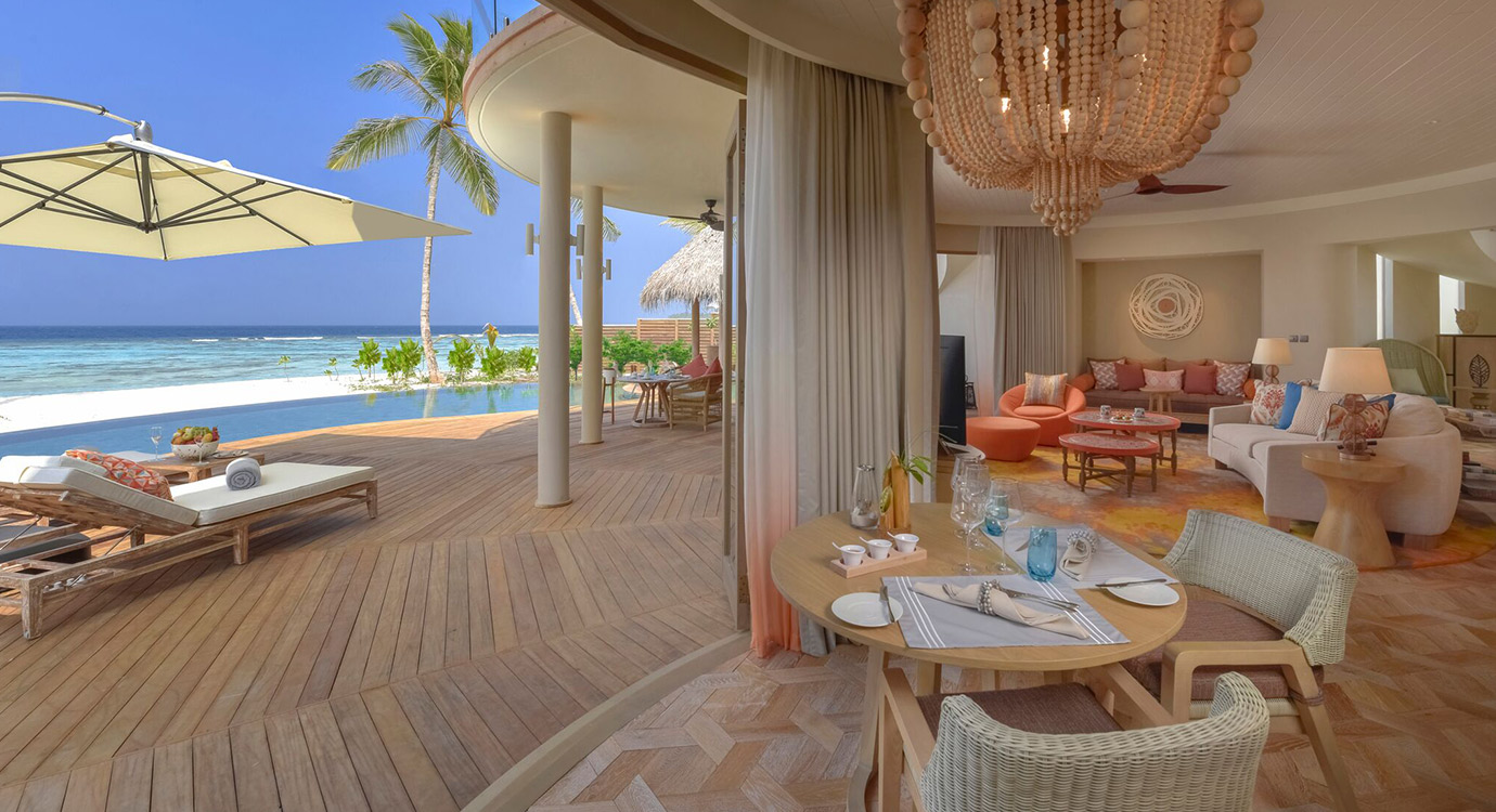 鹦鹉螺岛上的标志性建筑——复式三居鹦鹉螺大宅,由岛屿的主人亲自设计,是这里的终极海滩之家。这是在沙滩上的城堡,也是一个壮观的景点,全套定制的家具大部分为手工制品。装修风格和饰品具有纯净的波西米亚风格,休息室被阳光笼罩,室内空间保证宁静和隐私,只为实现绝对顶级的度假体验。