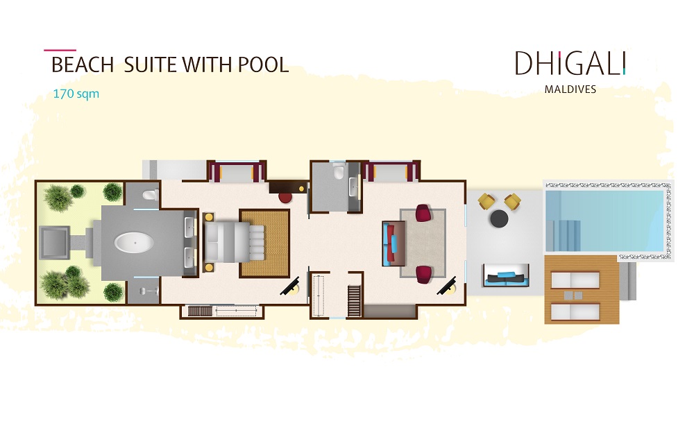 这是马尔代夫最好的别墅之一,带有私人游泳池,位于Dhilgali的3间一卧室海滩套房的僻静宽敞的海滨度假胜地,位于一片完美的沙滩尽头。室内/室外浴室通向天空,宽敞的阳台和超大型小型游泳池眺望地平线。