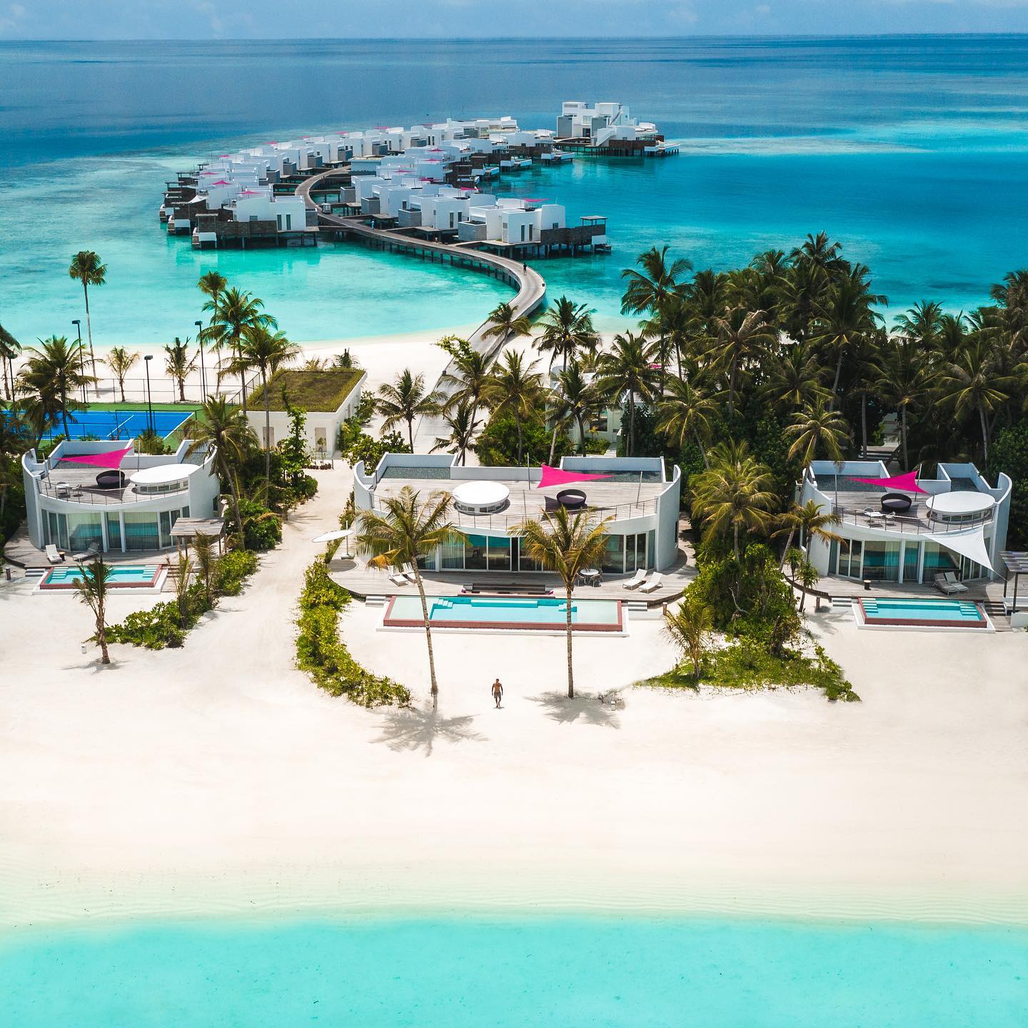 这是一座打破马代传统茅草屋风格,大胆前卫、以粉红性感亮相的奢华现代化岛屿...