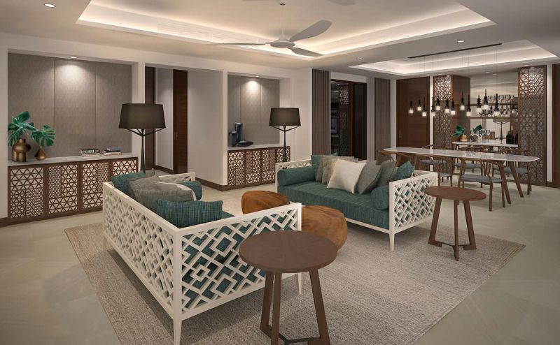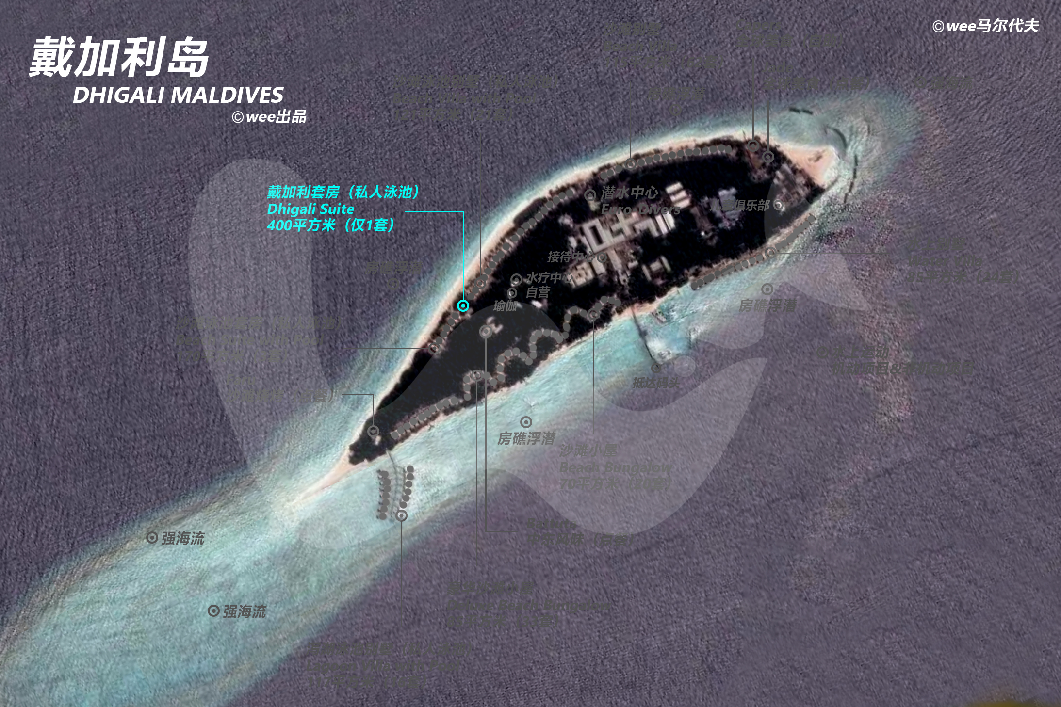 Dhigali Suite套房面积为400平方米,坐落在海滩边缘,拥有自己的庭院。凭借其现代化的设施,大型开放式甲板和露天浴室,它带来了马尔代夫闻名的露天生活方式。