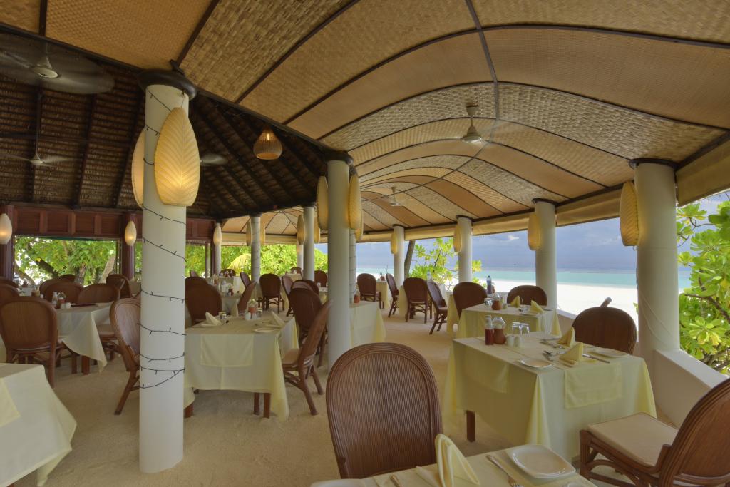 主餐厅提供一系列美味的国际美食,三餐均为自助式。有意大利菜、日本菜、中国菜、印度菜、西方菜、正宗的马尔代夫传统菜,都足以满足各国游客的需求(毕竟4星岛屿,餐饮要求不能太高),每个座位都可以看到泻湖美景。