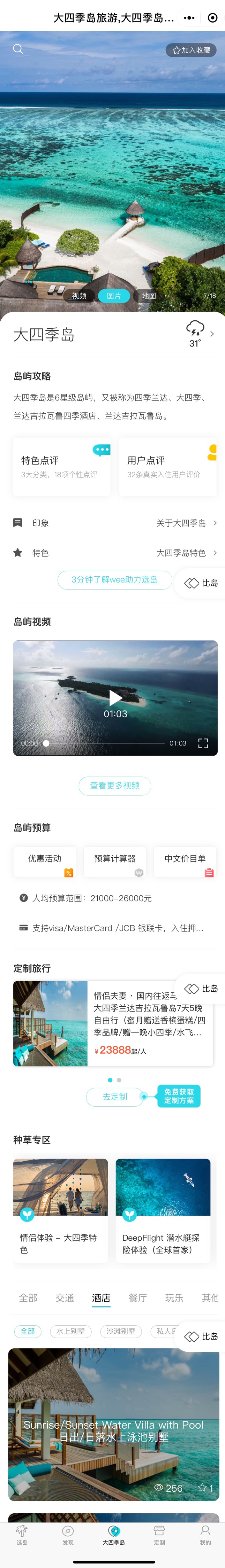 • 可以点击查看详情,内有这个岛上的全部攻略,涵盖岛屿介绍、交通、玩乐、酒店、餐厅、购物、特色点评、真实用户点评、活动优惠、常见问题等其他问题,可以说解决你对这个岛屿95%以上的问题。