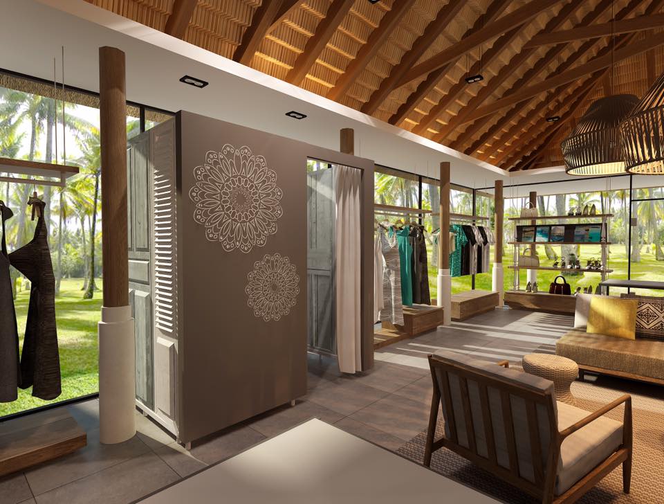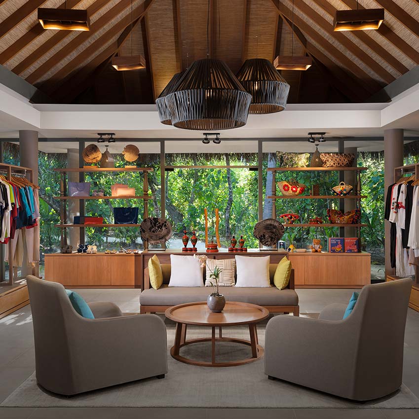 这是一家豪华精品店,配有休息室,包括一系列高端海滩和度假服饰,还有包、凉鞋、泳装、纪念品以及马尔代夫当地纪念品。