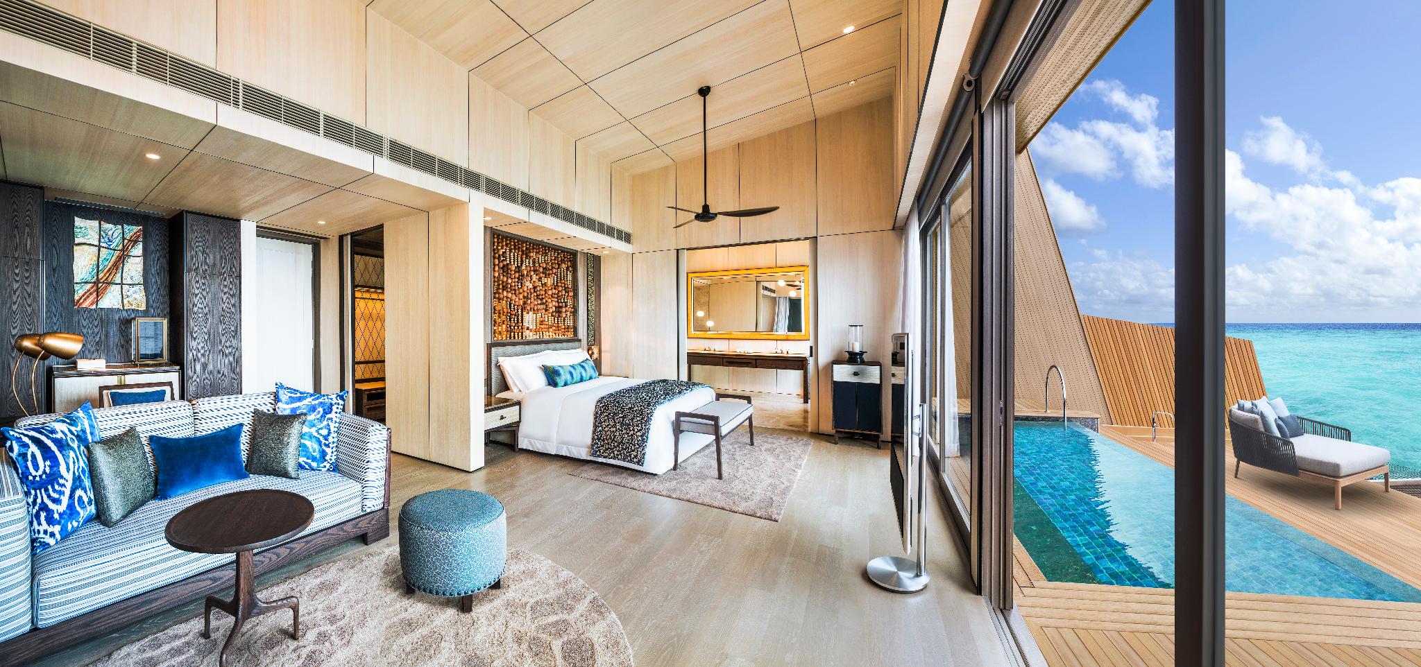 Overwater Villa别墅都位于度假村的珊瑚礁附近,包括带游泳池的水上别墅和带泳池的Sunset Overwater Villa别墅,提供私人游泳池和印度洋的落地景观。每间日落水上别墅均设有游泳池,享有令人难以忘怀的日落美景。