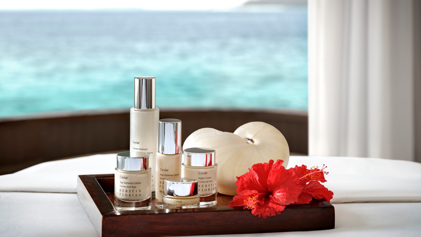 六间护理套房中包括两间带私人蒸汽浴室的阿育吠陀套房。滑动玻璃门让客人可以在spa床上欣赏一望无际的海景,在带浴缸的私人露台则有清新的海风来放松身心。淋浴间和浴室提供无与伦比的隐私和便利。水疗中心的蒸汽浴室、桑拿浴室和冷水淋浴间可以提供额外的护理体验。