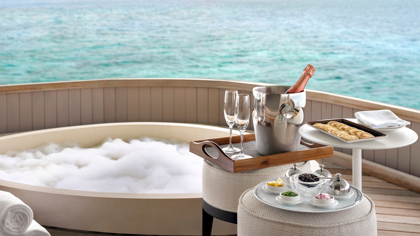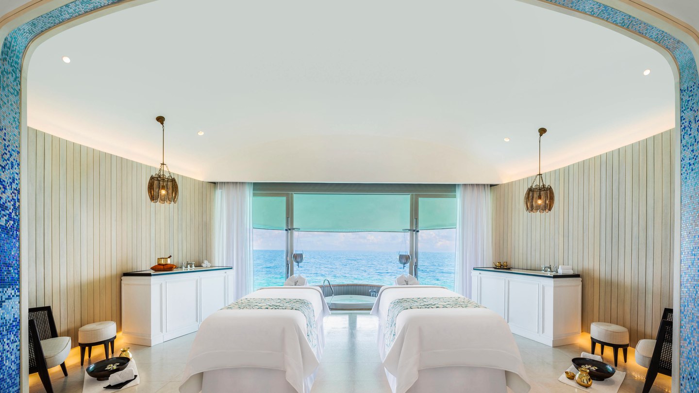蓝洞泳池位于带顶棚的露台上,拥有风景如画的海景,是马尔代夫最大的水疗池。加热的海水和一系列喷射器制造的旋涡可以缓解紧张,放松身心。阿育吠陀专家,针灸师和其他专业人员随时准备量身定制的护理方案,以满足每个人的健康需求,从巴厘岛到泰国按摩,草药护理到面部护理,美甲和修脚,让每位客人都感觉神清气爽。