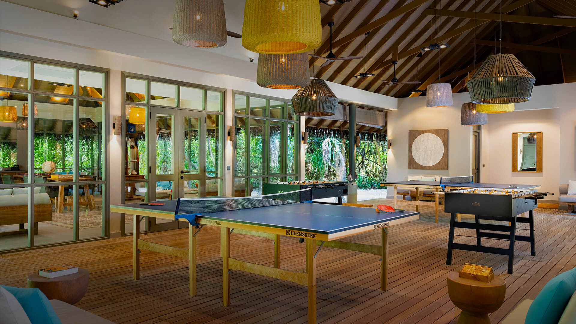 台球桌、乒乓球桌、桌上足球桌、棋盘游戏、茶及咖啡设施、安静的休息室和阅读区等等。