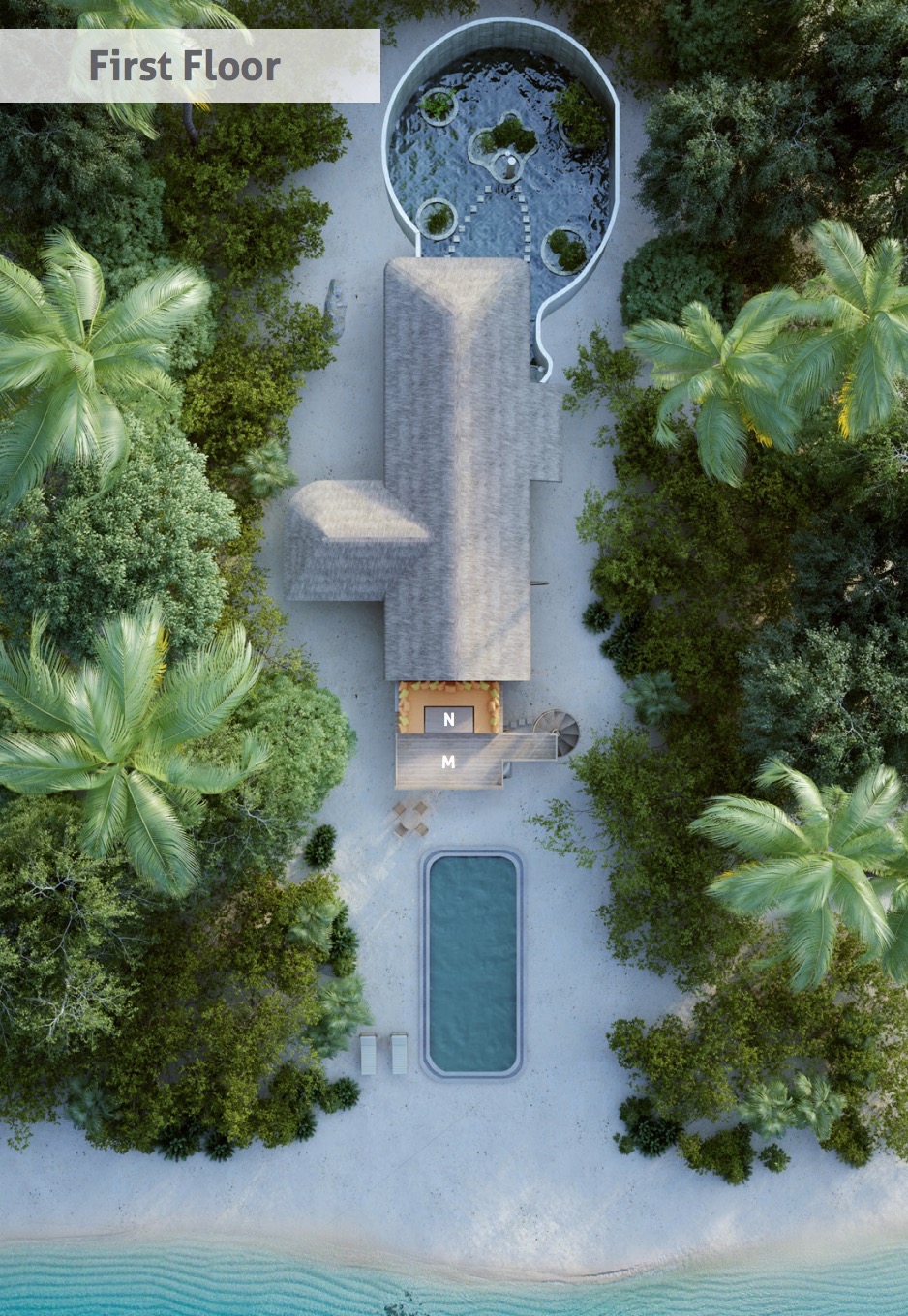 这是夫妻两人或小型家庭的理想度假住所,含有一个单独的儿童房,适合一名青少年或两名年幼儿童居住。这套别墅的房型和Soneva Fushi Family Suite房型类似,但是多了一个私人泳池。