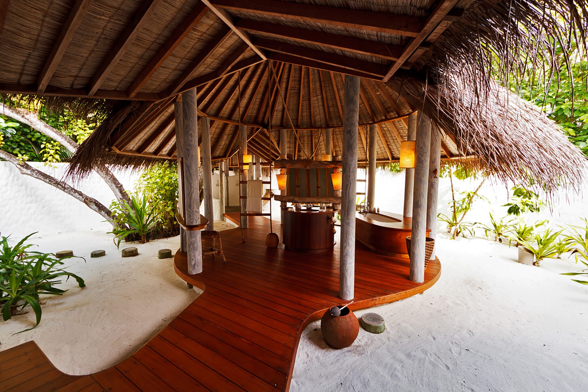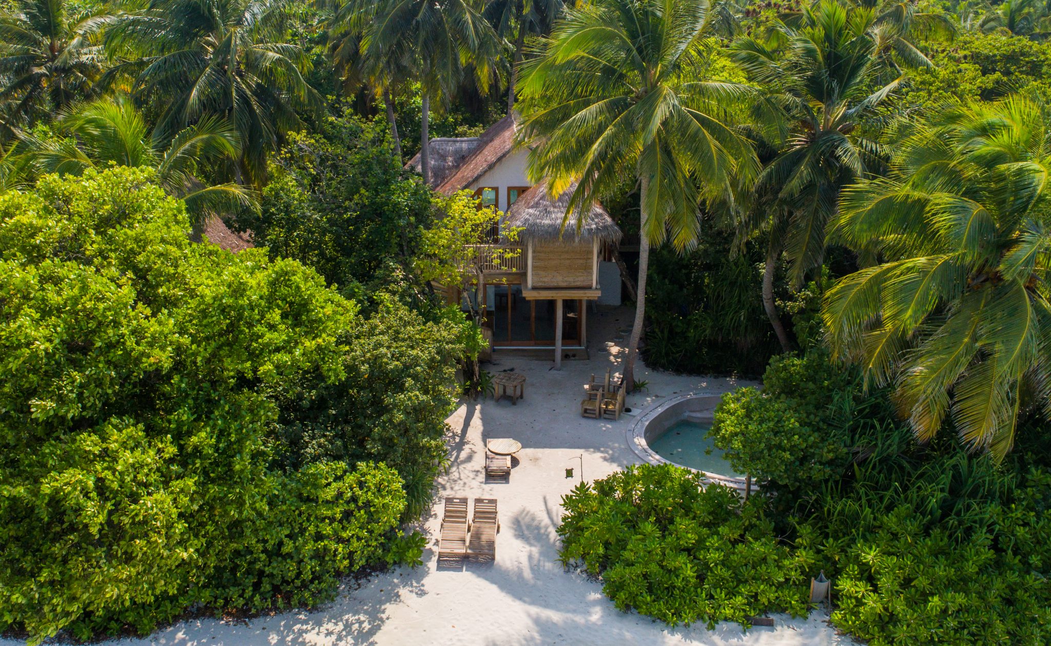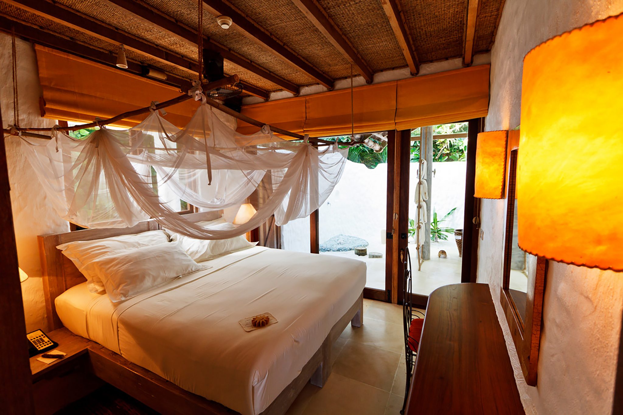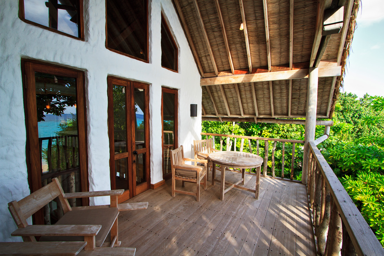这一别墅充分利用热带地区的风格设计:选用带有木节和弯曲的原木、编制的草绳、回收再利用的板条以及棕榈茅草。室外花园浴室可在星光或日光下沐浴,拉近人与自然的距离。在露台高高低低的台阶上偷个懒,纵身跳入私人泳池,或在门阶外的沙滩上休憩,可充分体会到鲁滨逊·克鲁索的精神。