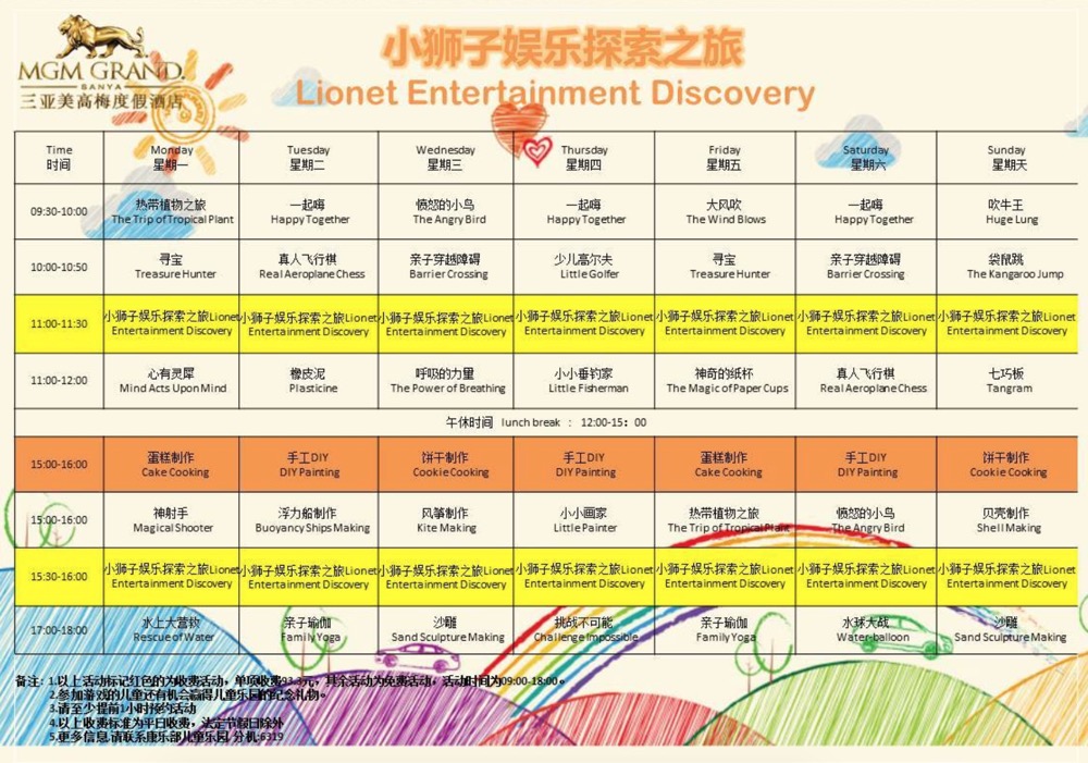 亲子亮点:非常多的娱乐活动,从早high到晚。