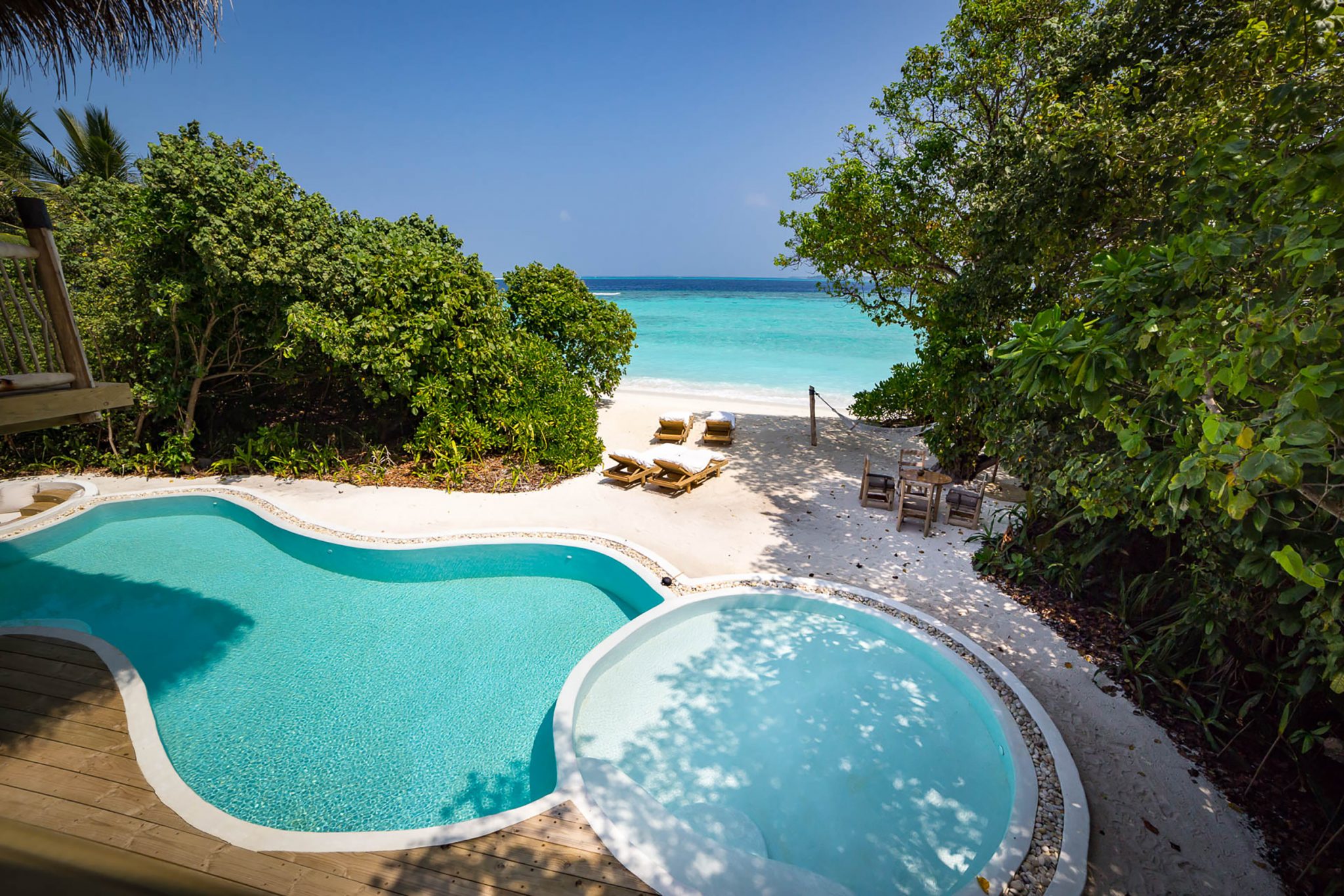 茅草屋顶极具马尔代夫特色,在宽敞的3卧室别墅套房和清凉的泳池里玩耍,漫步在门外马尔代夫的白色沙滩上,或是骑上自行车,开始一场海岛探索之旅。