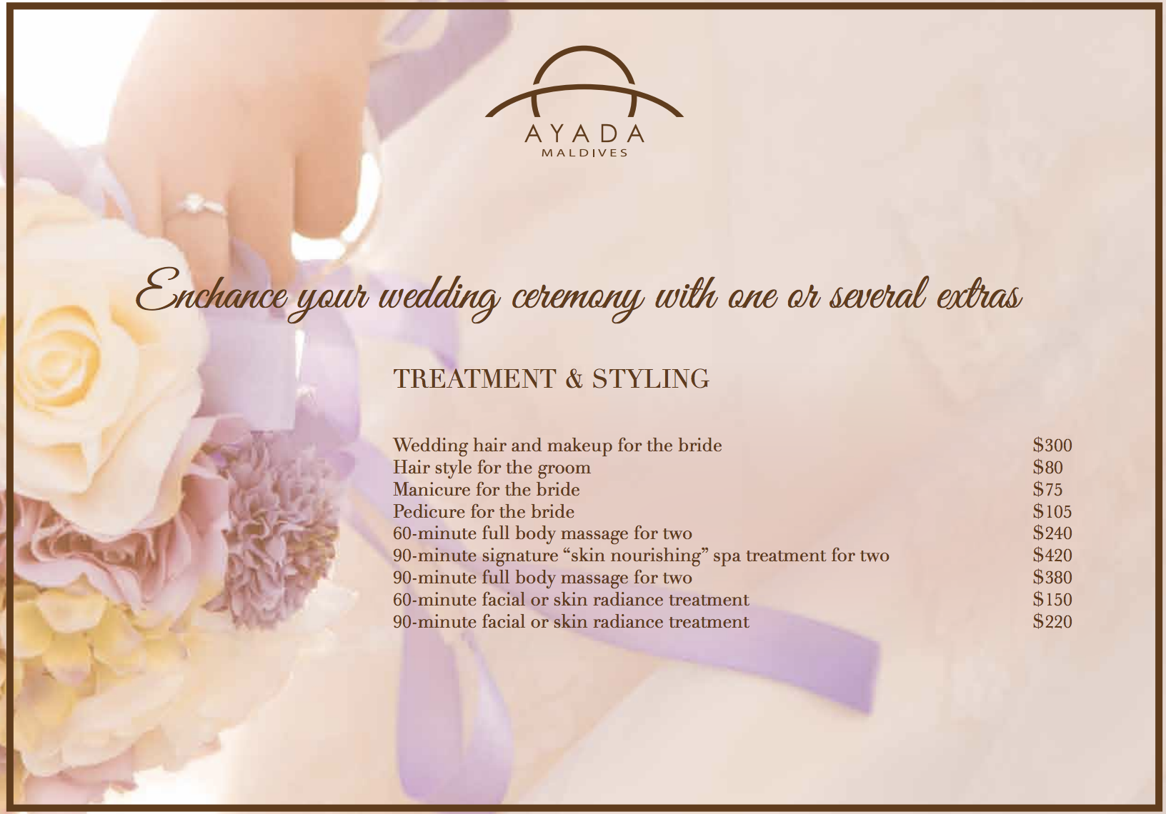 ・ 升级至120分钟spa浪漫套餐(AySpa待遇),每人175美元。