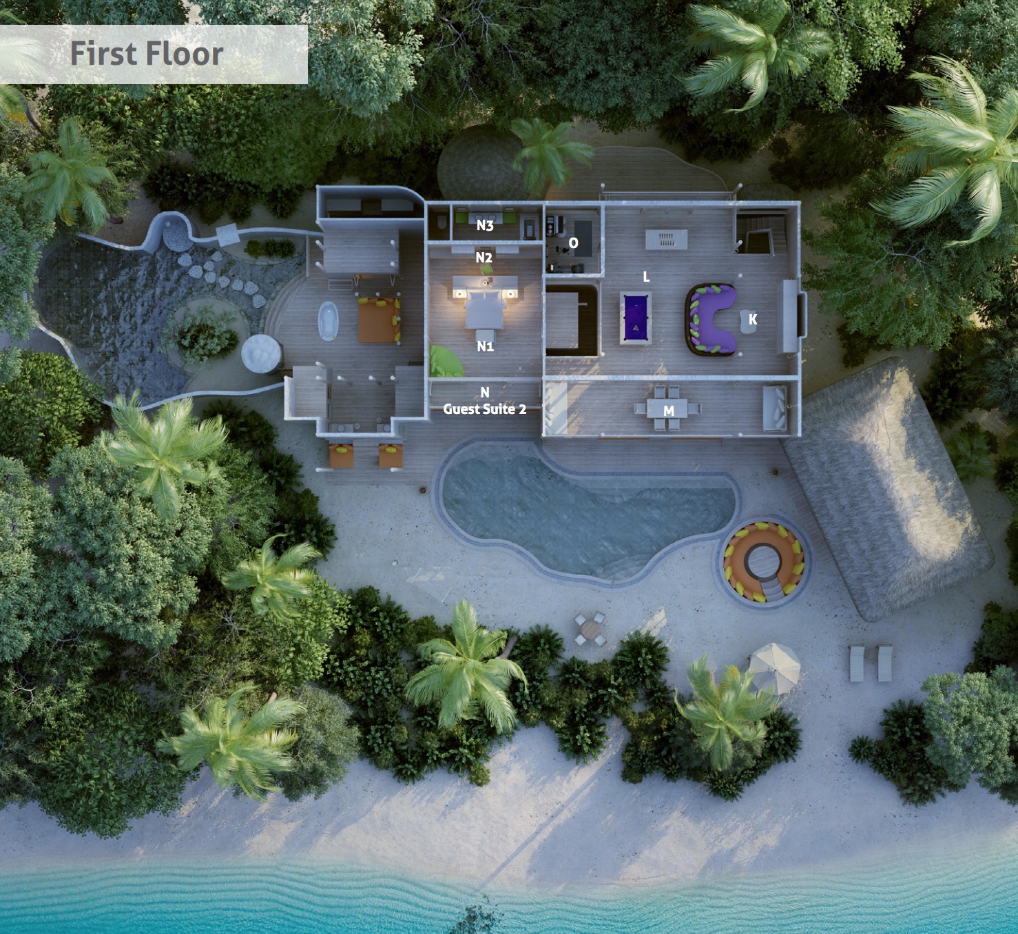 Villa One1号别墅它的名字彰显了其尊贵地位,在游客当中拥有很高的声誉。这一3房别墅采用竹、各类可再生木质及传统茅草屋顶打造。精心布置的室内居住区域、热带风情洋溢的室外起居区域、浪漫的露台、观景台、诗意的走道以及超大私人海滨泳池,都值得探索。