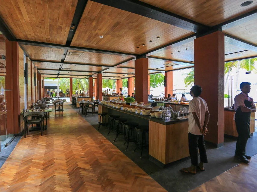 主餐厅Fresh坐落在泳池边,是一个充满阳光的早餐厅。餐厅主要提供早餐,有全球风味的美食,早餐的供应方式有自助,也提供点餐服务。快乐的一天从这里开始,岛上的早餐都在fresh吃,面包、水果等各种丰富的冷餐是自助的。除了自助之外,热食和果汁是点餐。品类丰富,餐厅有提供中文餐单。