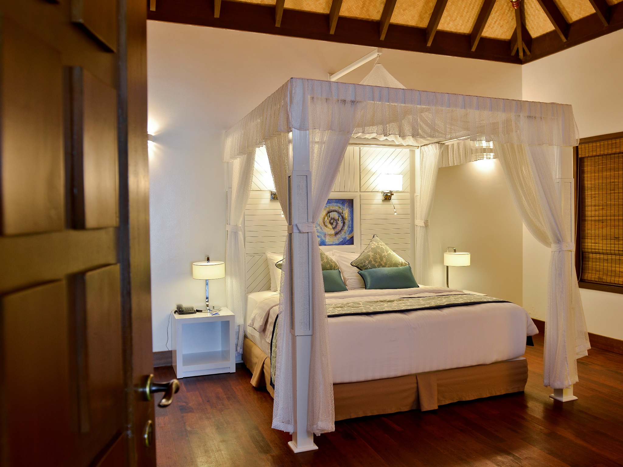 酒店的标准间Standard Room拥有茅草天花板和私人庭院区,岛屿的简约优雅。此标准间,就坐落于郁郁葱葱的庭院中。
