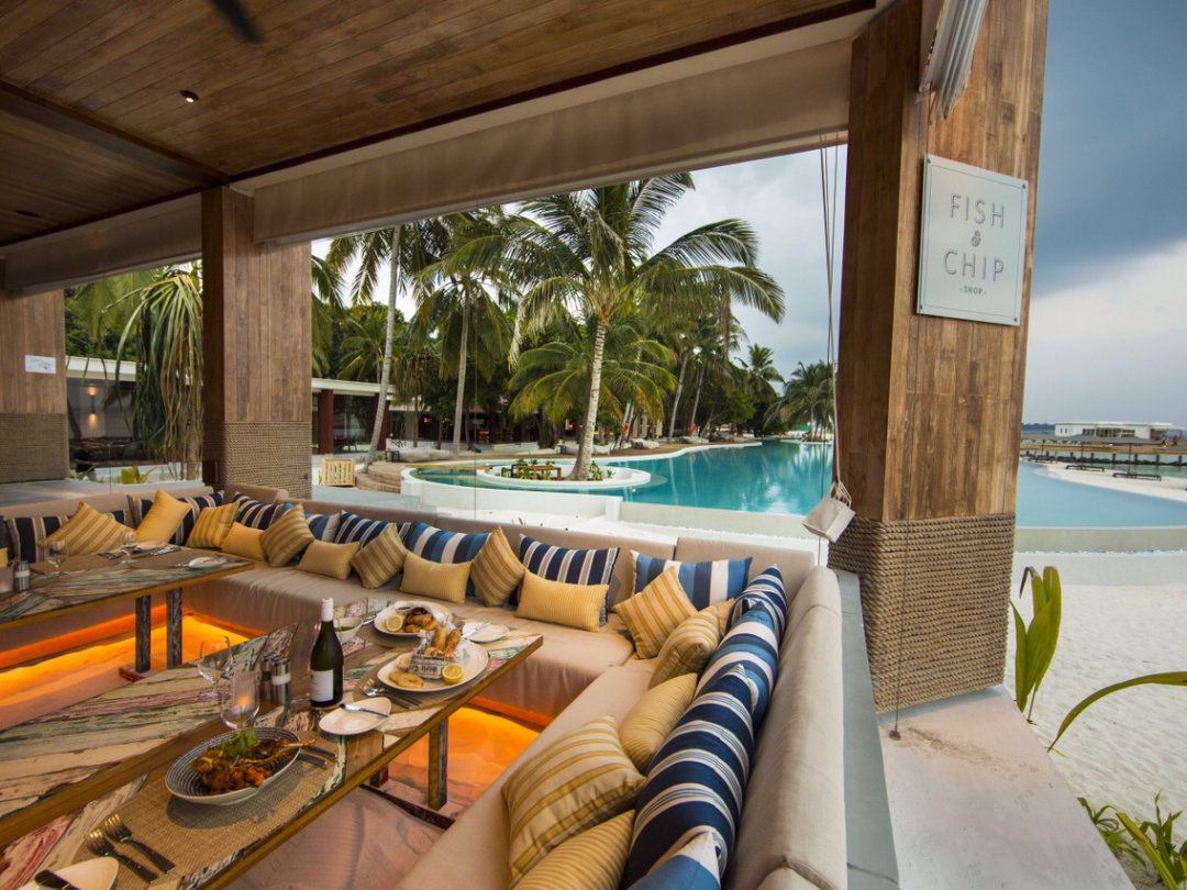 Fish & Chip Shop餐厅提供各种刺身,腌制的、新鲜的海鲜。这里有新鲜捕获的鱼和长相思白葡萄酒,与马尔代夫海岸的幸福背景相映成趣,精致的用餐体验,深入灵魂的舒适感。