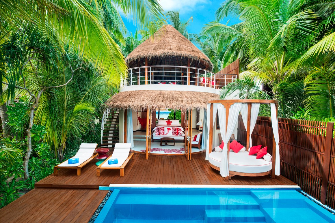 W宁静岛坐落于阿里环礁中部,这里气候宜人,终年阳光明媚,马尔代夫W酒店是理想的疗养胜地和水上运动乐园。在七彩光晕的笼罩下,海龟和海星游曳嬉戏,构成一幅美丽的画卷。所有房间都凉爽得令人难以置信,线条简洁优美,并有博世立体 音响设备和巨大的私人阳台。