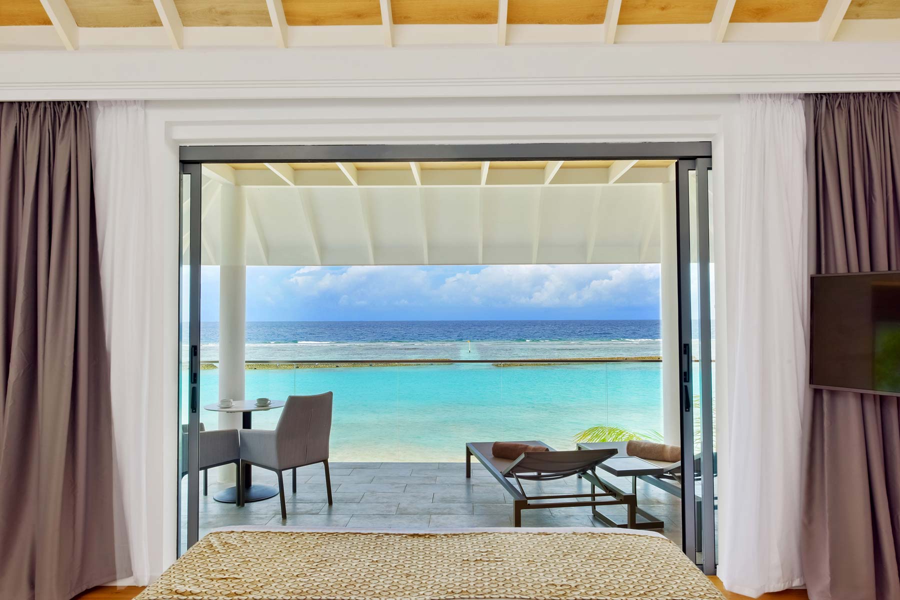 两卧室海滨别墅非常适合一起旅行的家庭或朋友,别墅拥有两层楼,每层都设有独立的起居空间。两间宽敞的卧室配有特大号床、沙发床和木制日光浴平台。宽敞通风的浴室配有浴缸,淋浴,梳妆台。这些复式别墅位于岛屿的顶端,面向泻湖或珊瑚礁,每个可容纳6名成人或4名成人和2名儿童。