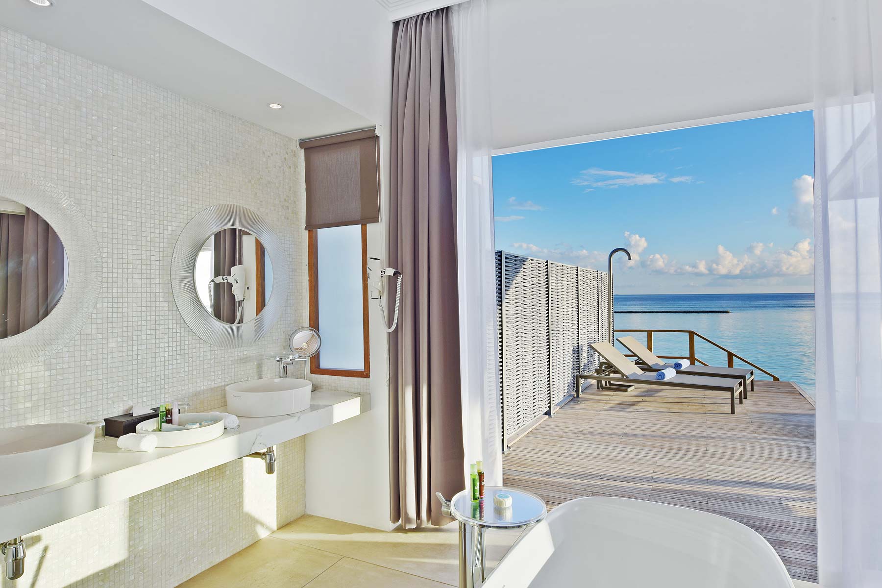 Water Villas with Pool别墅位于清澈的泻湖,面向珊瑚礁,均拥有类似于豪华水上别墅的现代内饰。这些别墅还设有俯瞰大海的私人游泳池(18平方米)。