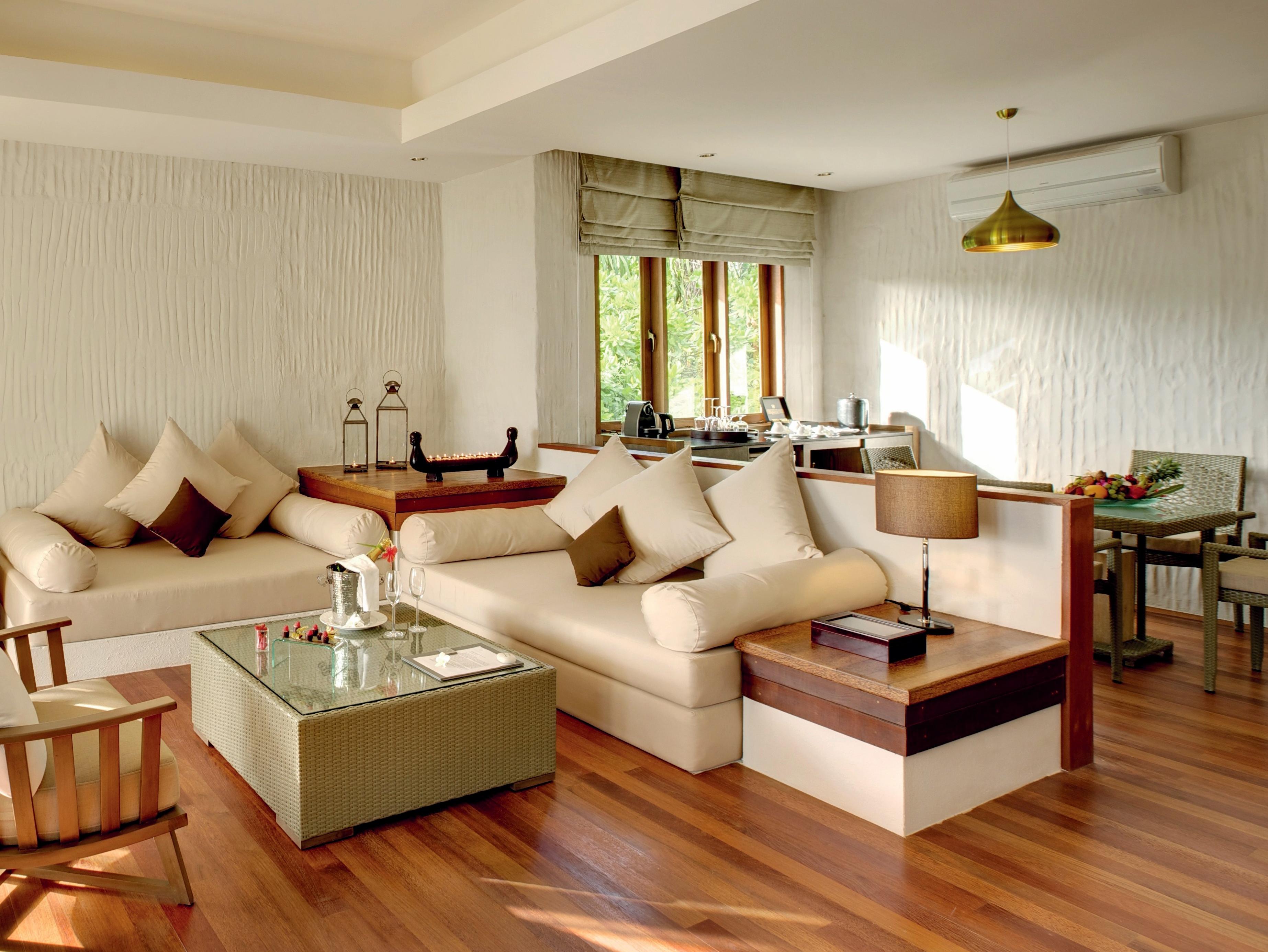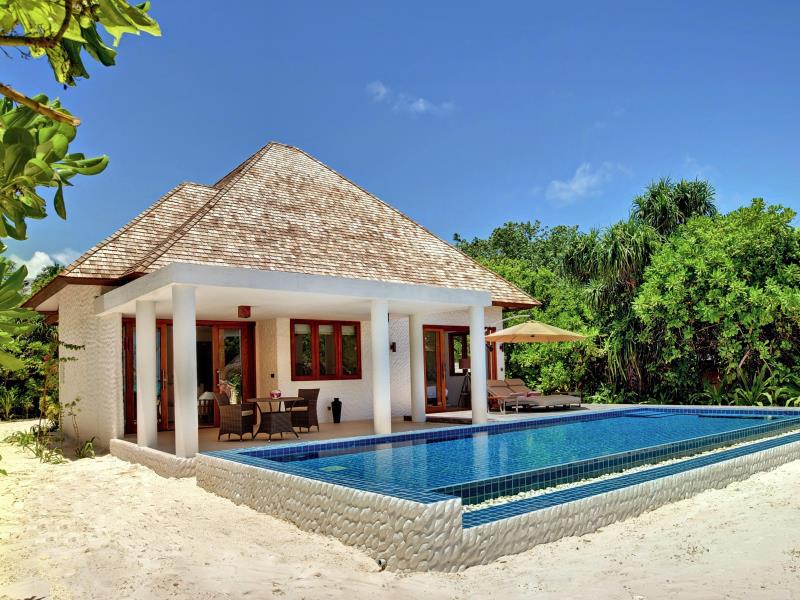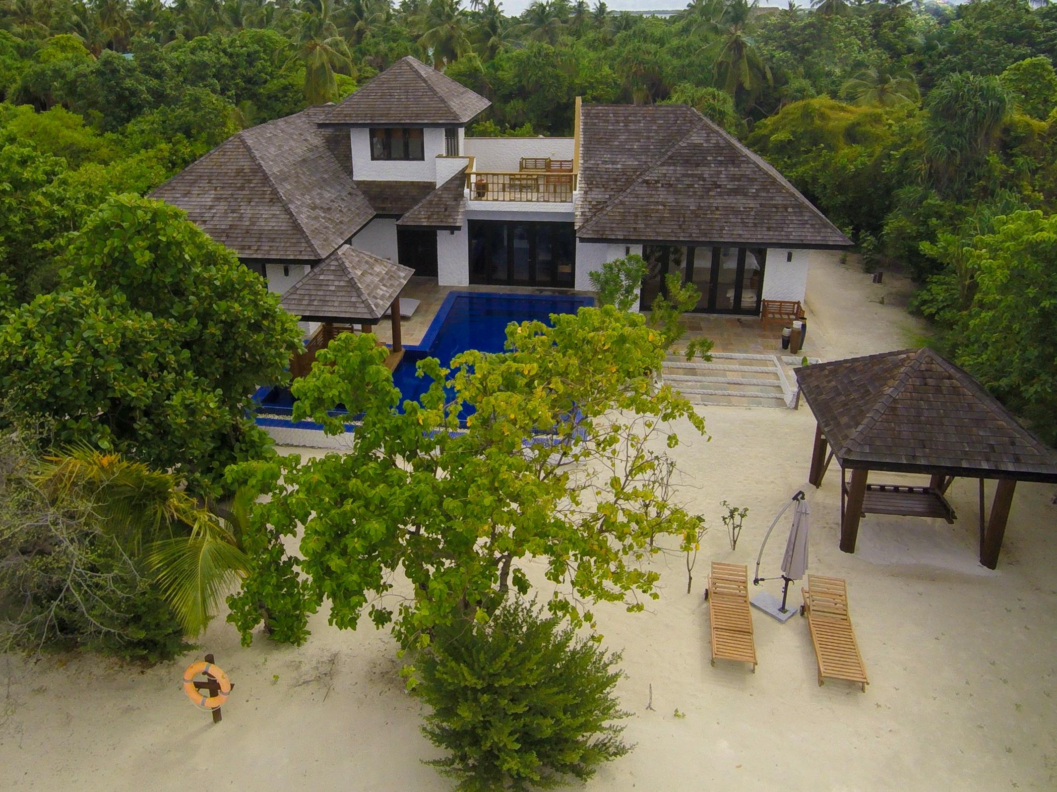 Deluxe Beach Residence with Pool 豪华沙滩泳池住宅位于岛屿中央位置,坐落在一个郁郁葱葱的热带花园中。豪华沙滩泳池别墅距离海滩只有几步之遥,别墅推拉门通往露台和私人海滩,在海滩上有一个马尔代夫的传统秋千(网红秋千)、一张海滩餐桌、日光浴躺椅,还设有独立的起居和用餐区,私人空间非常充足。