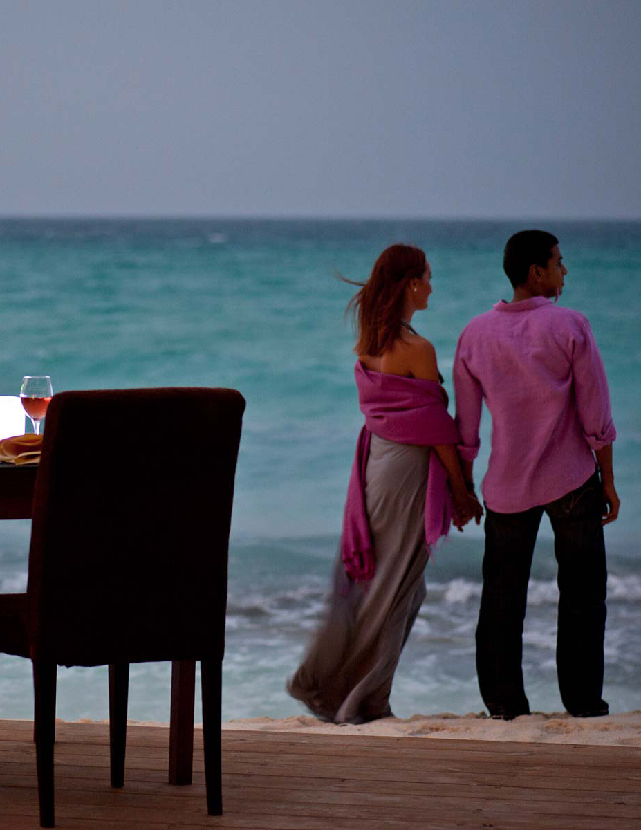 一个烛光四道菜的晚餐,在海滩上一个隐蔽的角落里,尽情享受彼此的陪伴。