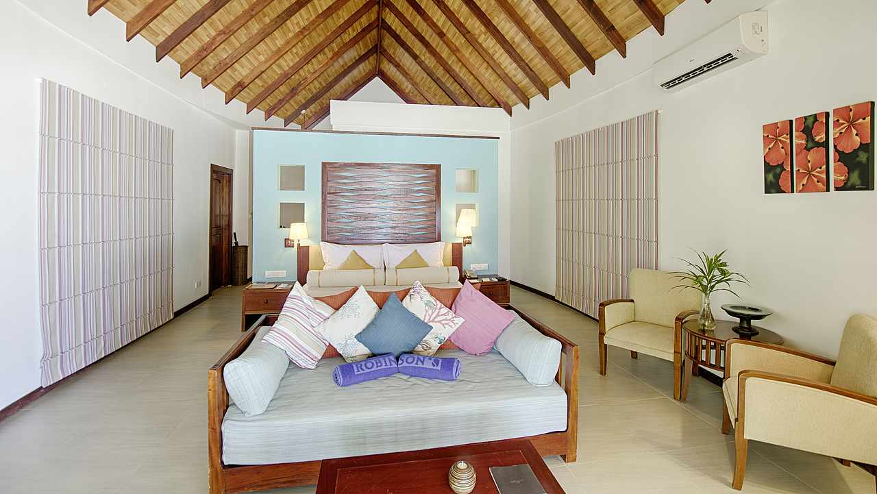 座落在水边,宽敞的平房可感受到海洋微风,中规中矩的沙滩屋, 所有沙滩房型前面都有低矮植被,视线要越过植被才能看到大海。