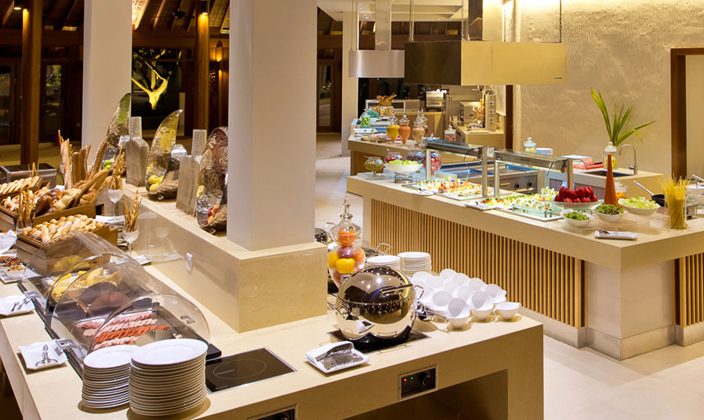 Matheefaru是神仙珊瑚岛的主餐厅,主要以自助餐为主,一价全包和HB的客人都是在此用餐。