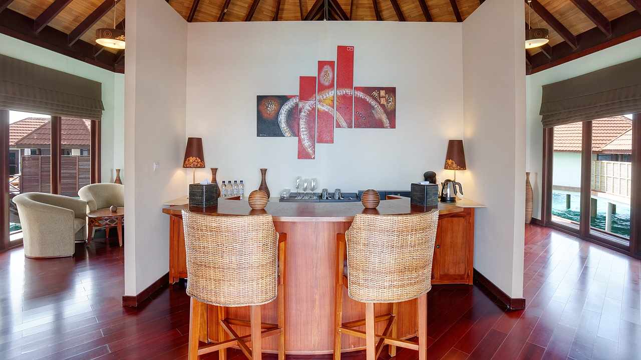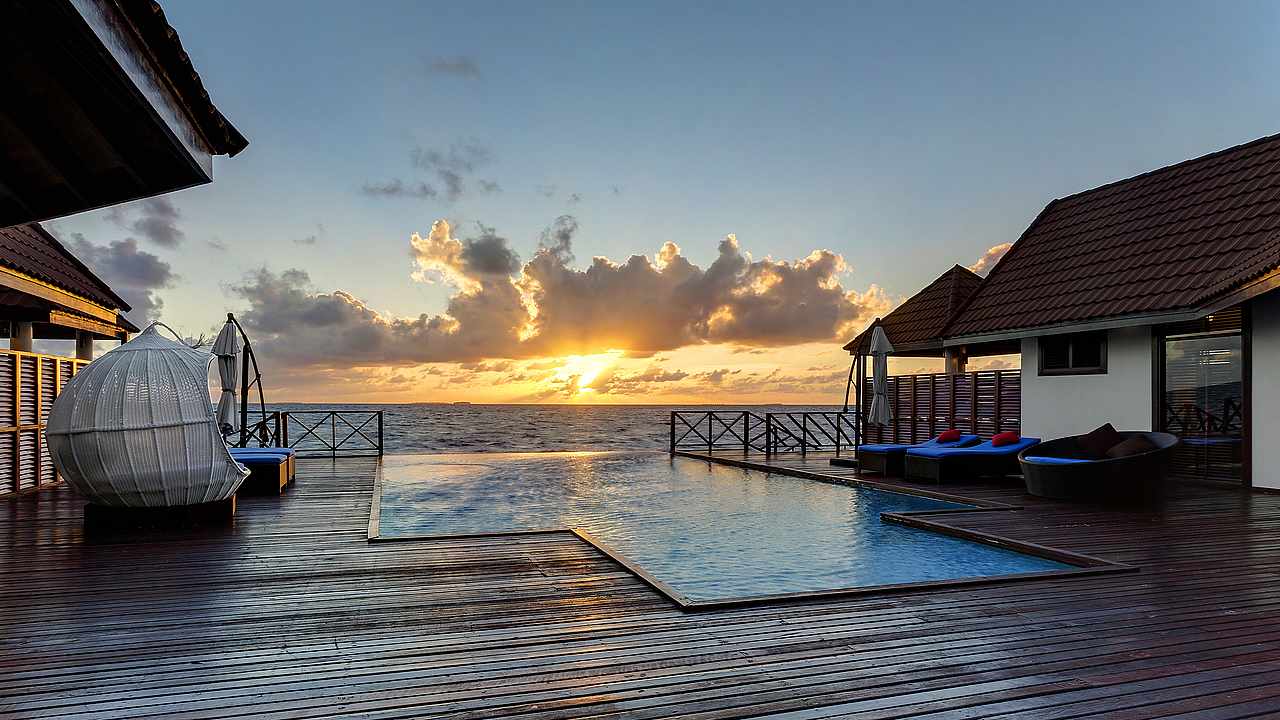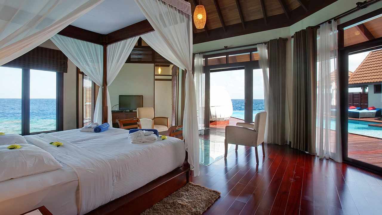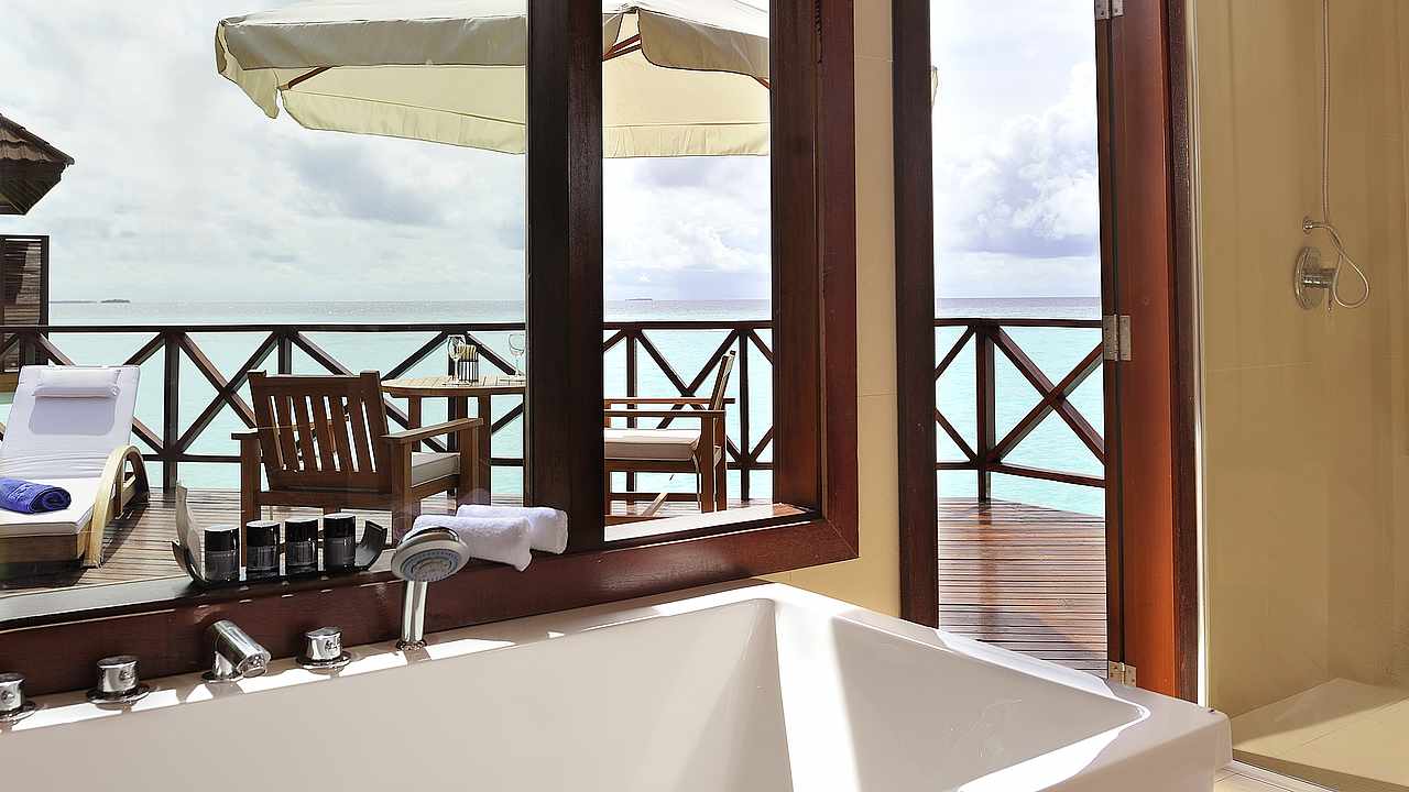 Presidential suite 总统套房是岛上最豪华也是面积最大的一个房型,并且只有一套,享有私人泻湖无敌海景,私密性好,充足的使用面积。