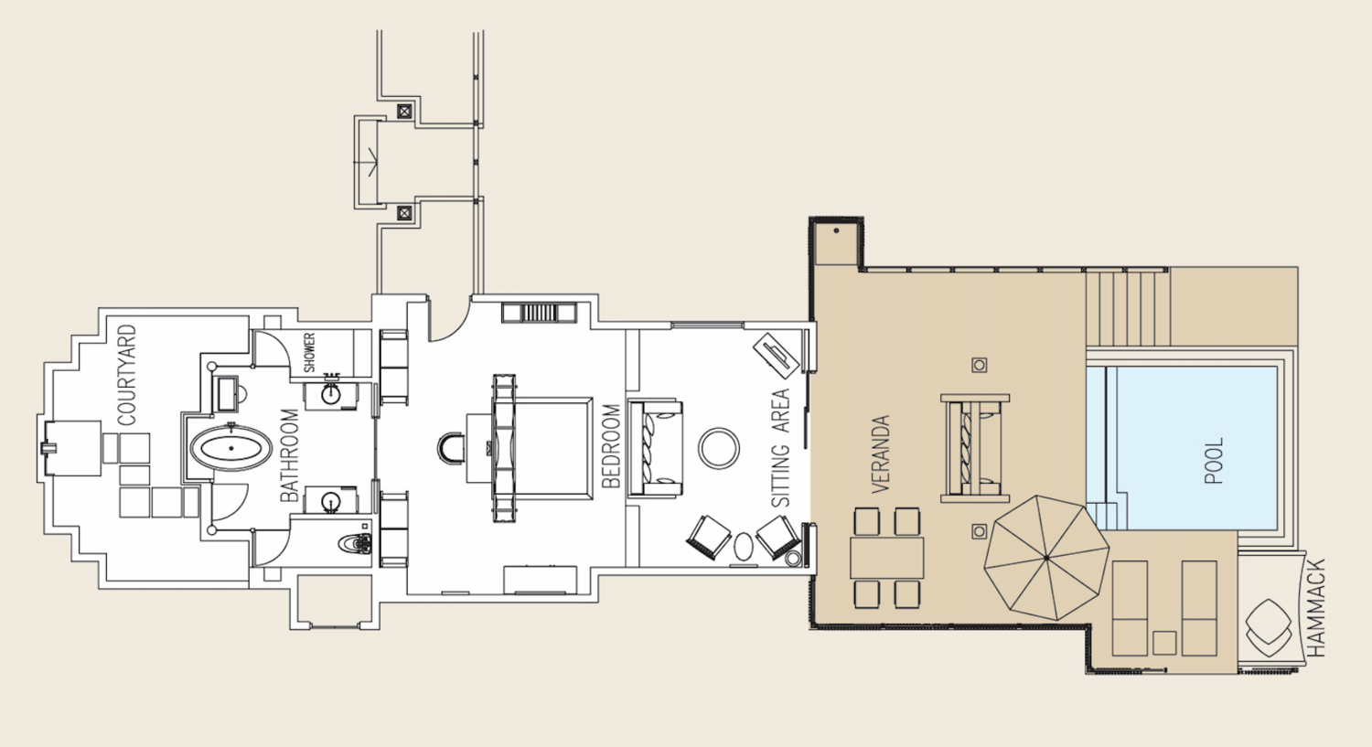 套房位于泻湖之上,拥有超大的海洋户外露台,结合了热带花园和泻湖神奇景致的独特特色。这些别墅拥有宽敞的甲板,在温馨的花园中设有一间浴室。宽敞的户外露台提供舒适的秋千沙发、小型游泳池,从楼梯可直接跃入泻湖。