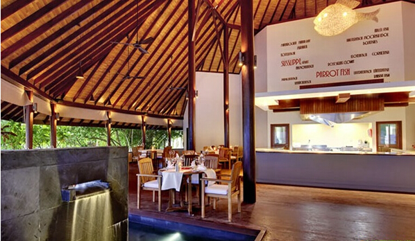 鲁滨逊岛上的埃德尔特色餐厅(Das Edel)位于靠近水上别墅一侧的沙滩旁边,是岛上一个令人惊叹的用餐地点。轻松优雅的就餐环境,再配上龙虾或者神户的优质牛肉和顶尖的葡萄酒,绝对是一次独一无二的美食之旅。同时这里还提供美味多汁的海鲜类菜品,并且融入了马尔代夫当地的美食,也是埃德尔特色餐厅里的一大亮点。