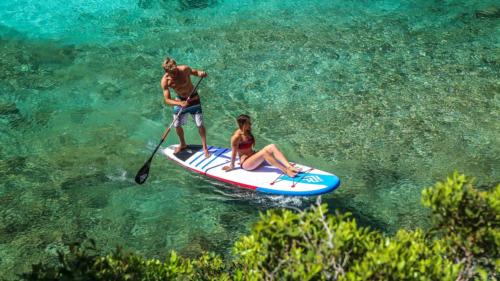 在湖上或海上享受美丽的风景,享受轻松的游轮,真正推动自己站起来划水比赛。