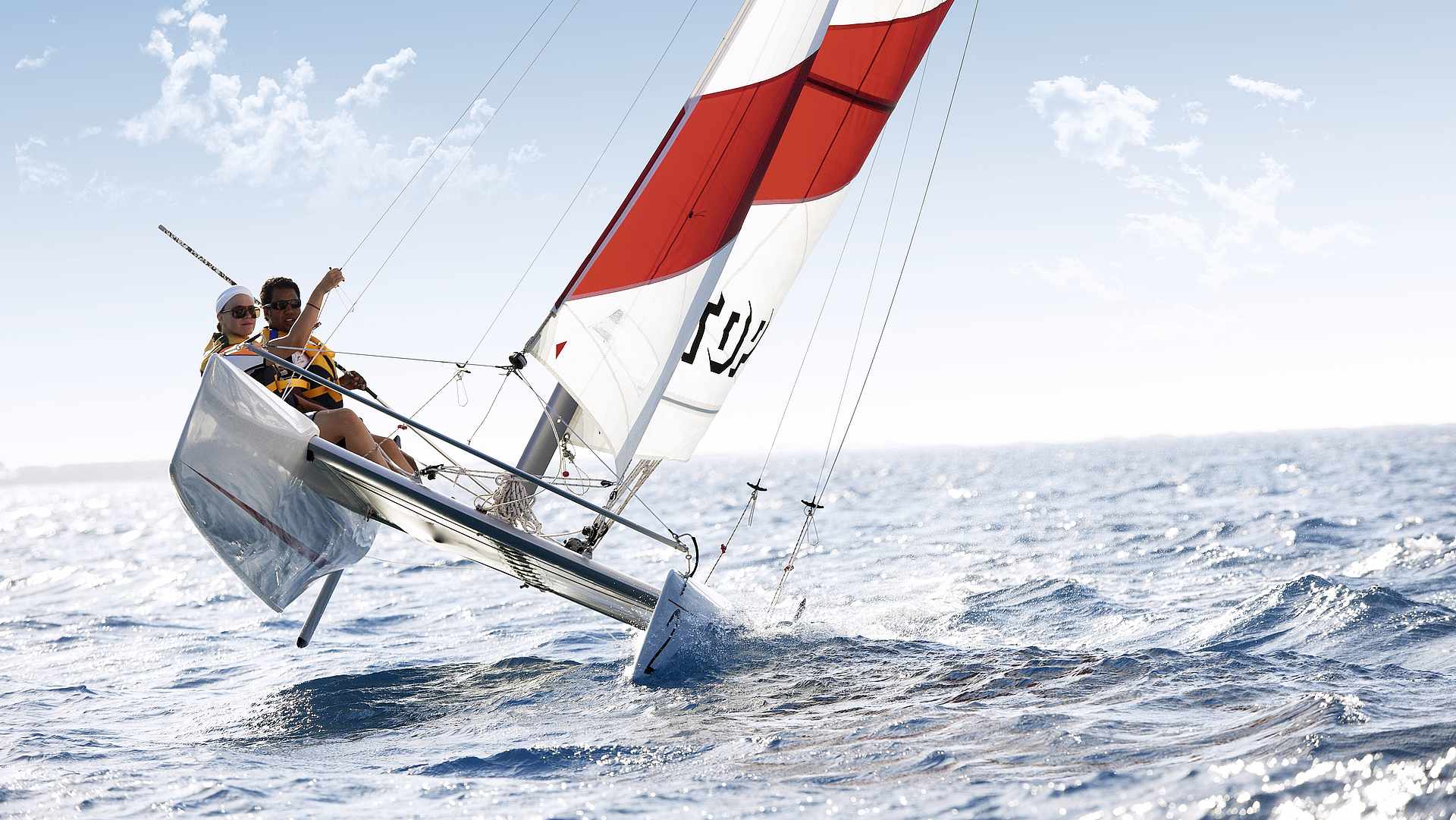 在俱乐部装备齐全的双体船上,你将学会固定、移动和使用。如果你已经有了双体船证书,只需在水上港口站出示证书,就可以免费租用双体船。