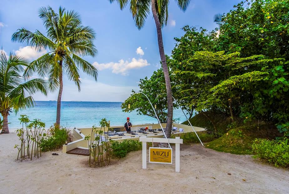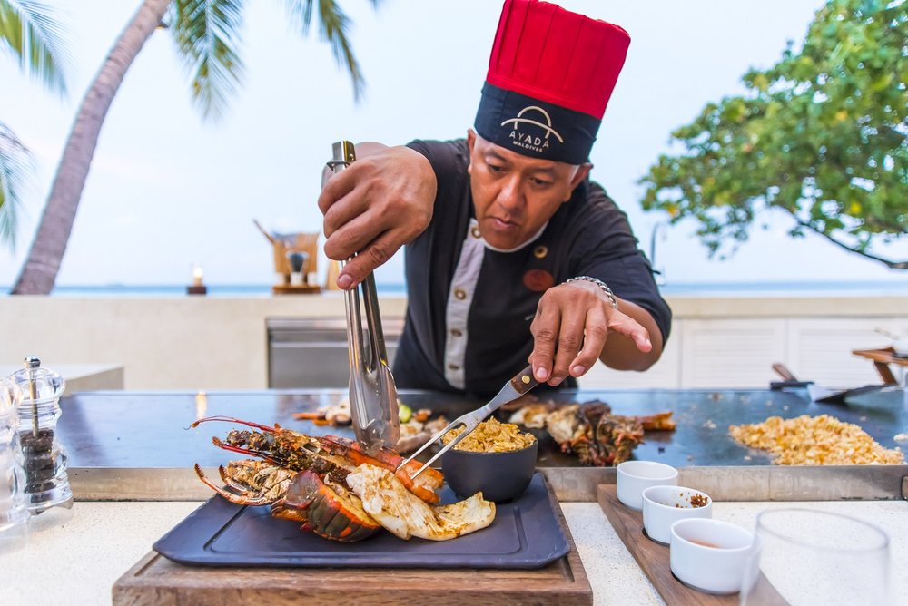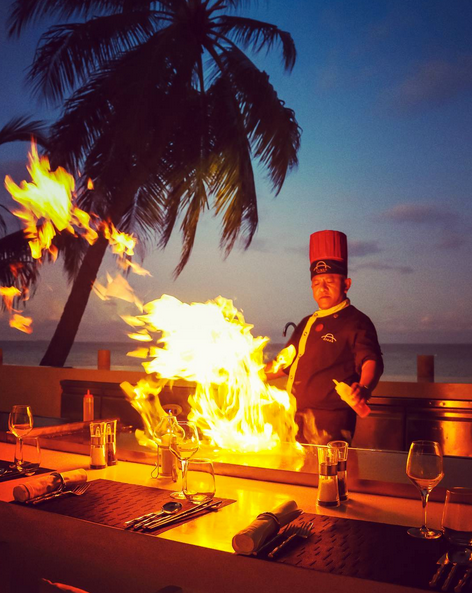 在沙滩上用餐,同时还能欣赏到主厨现场烹饪的过程,还是很不错的!