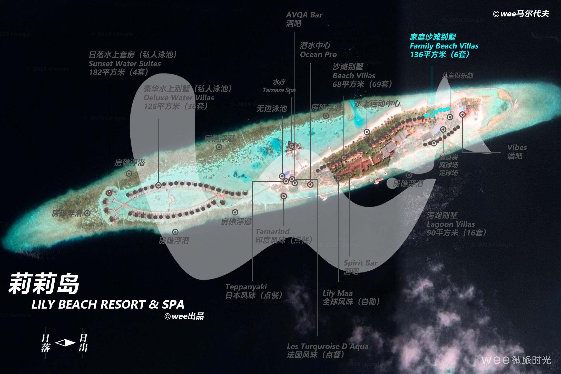 家庭沙滩别墅专为满足一家人或小团体的入住需求。位于诱人泻湖礁几步之遥的地方,靠近所有活动设施,这些相互连接的别墅能给远行的人另一个家园。